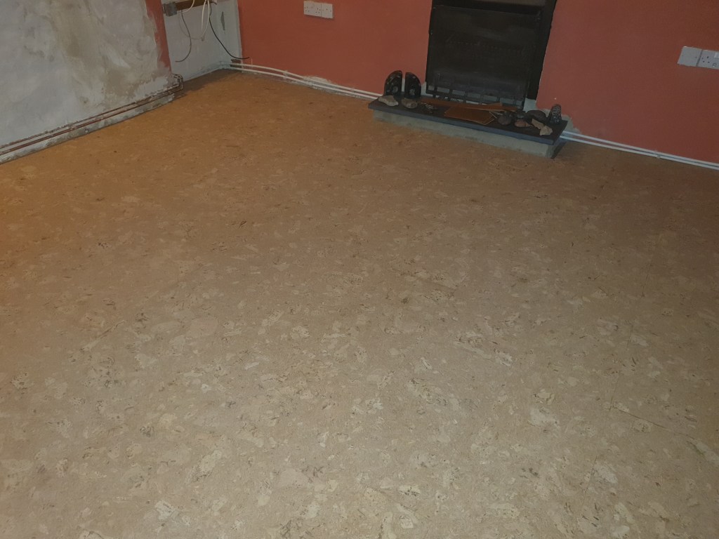 I quite like the finished look, though we need the furniture back in to really see how the room will feel. We chose quite a large grained cork, which I think looks quite like wood.