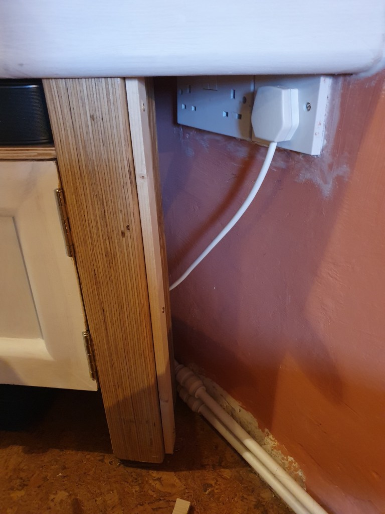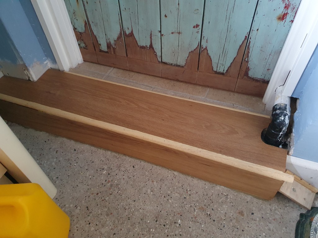 He also sanded the kitchen step and treated the wood. It still needs one side attached but unfortunately Chris has missed placed a small piece of wood to finish off the edge. It’s highly likely it was left on the floor and disposed of during cleaning.