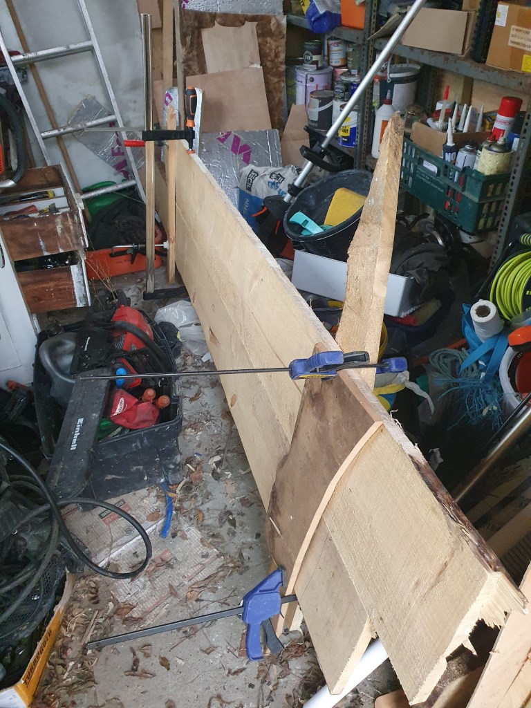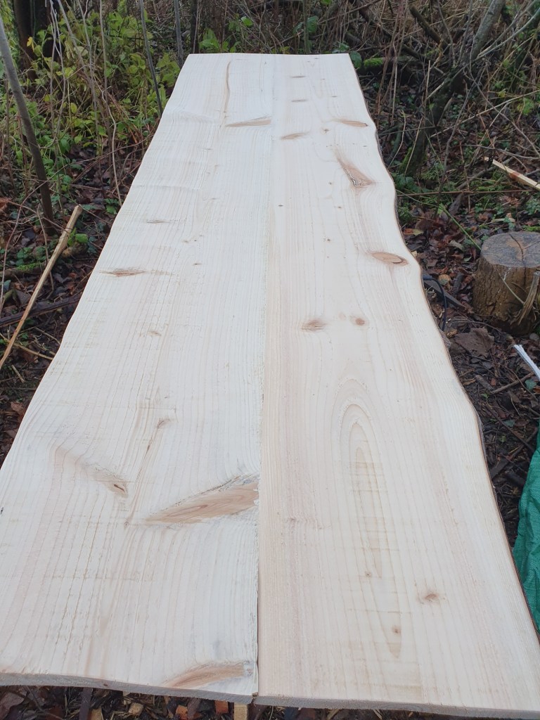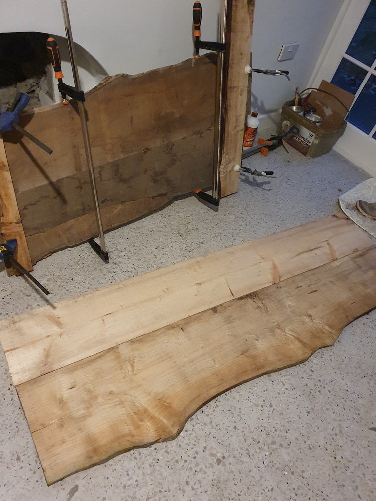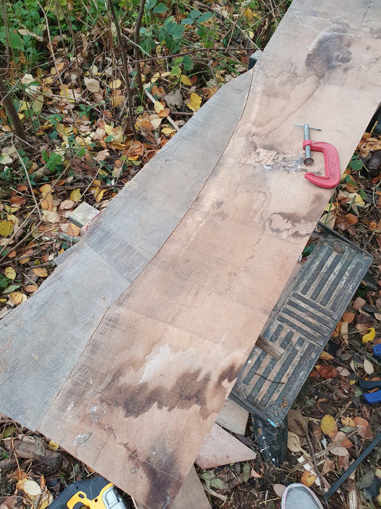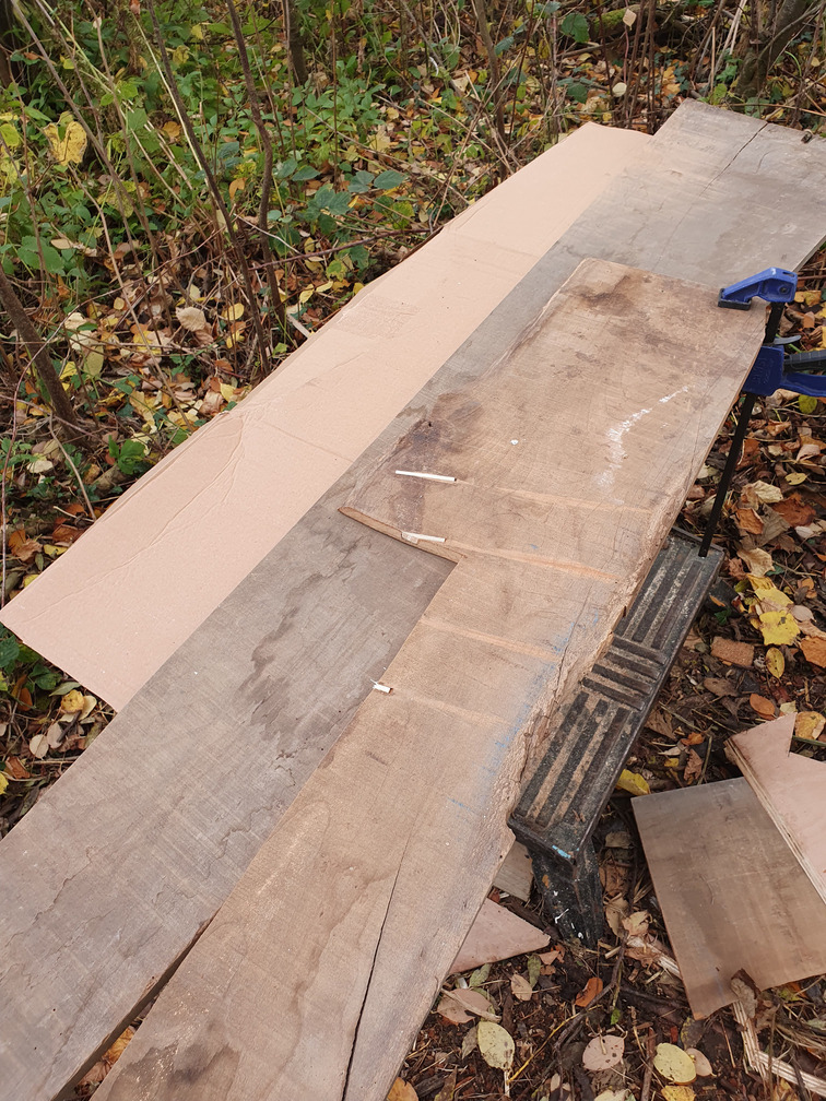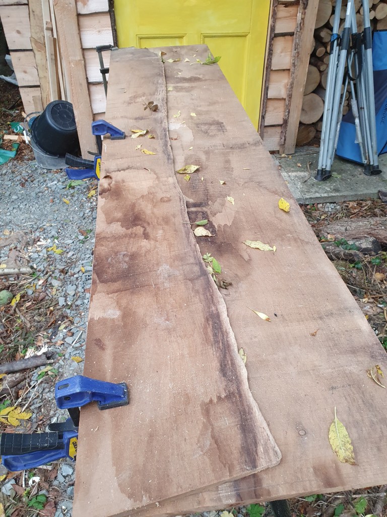 Having cut out the pieces I left them to dry for a few days before planing the edges and joining the pieces, and leaving the whole thing to set in the shed.