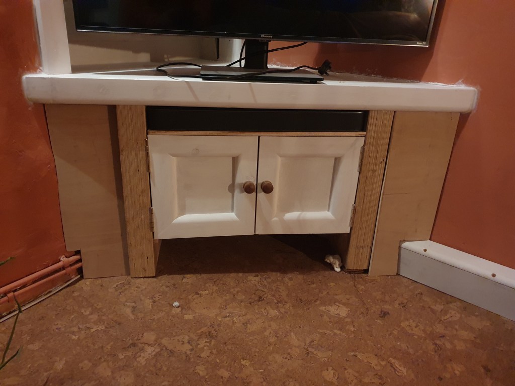 Released from box sorting I decided to try and finish off the corner cabinet. First the side panels needed attaching. To do this I had to screw in some batons to attach the panels to, a little tricky in the small space but doable.