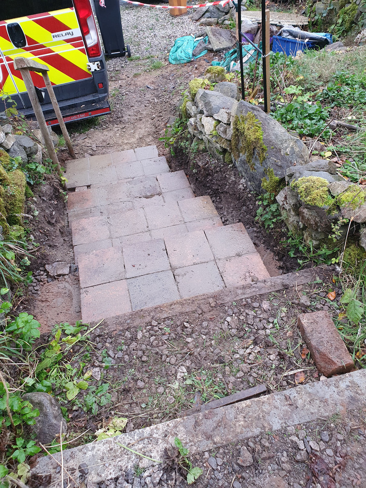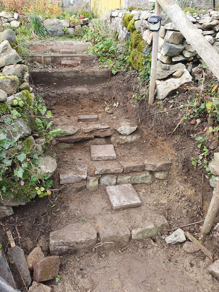 Chris has already replaced the top steps, but doing the bottom ones meant digging down a fair way, rather back breaking work.