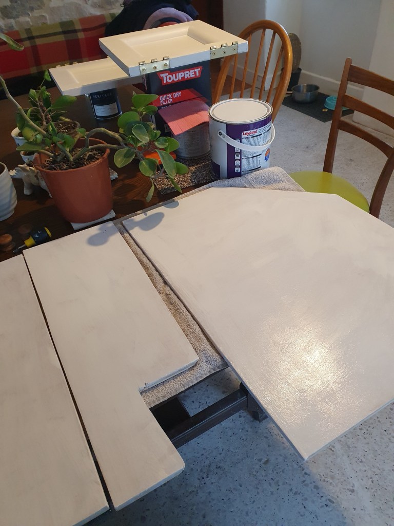 The rest of the unit got a quick sand, to tidy up some filler, and a coat of cream paint. The whole thing now needs a second coat, as do the pieces coated in primer, but this can’t happen till everything has dried.
