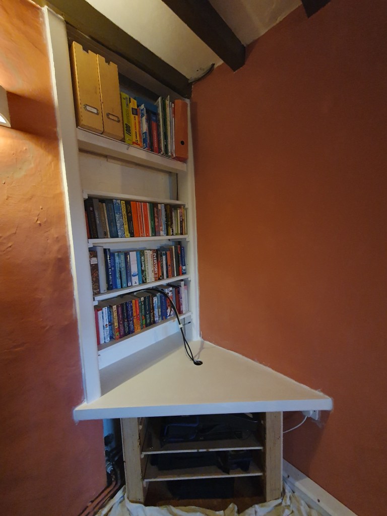 It wasn’t too tricky to cut the windowsill to shape for once, with just a couple of trims needed. I then used some wood filler on the gap for this new windowsill and the one I’d previously made for the study.