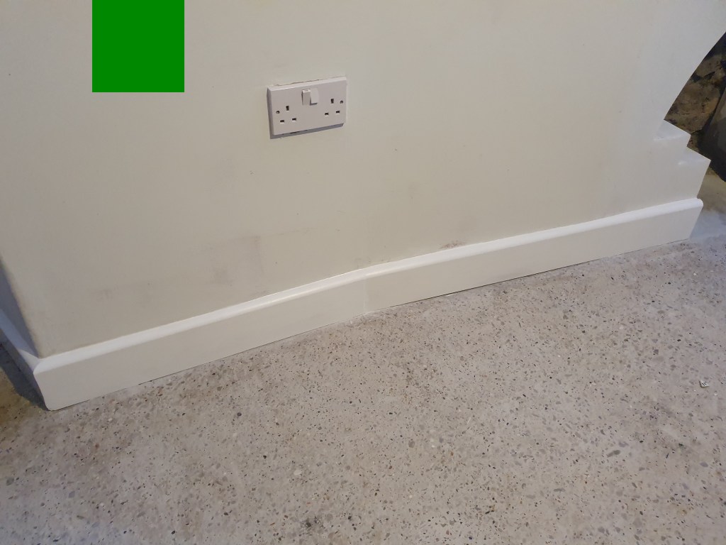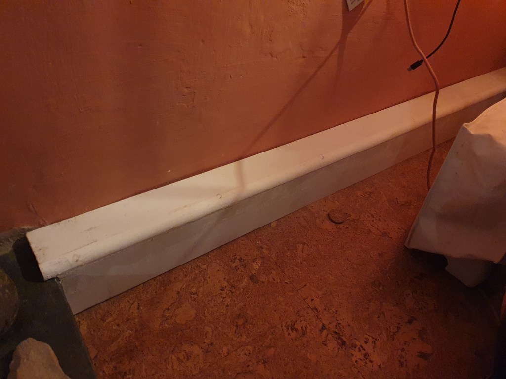 It’s always the little jobs that seem to take an age. After previously filling and sanding the skirting in the lounge and part of the kitchen, I thought I’d do the quick job of painting it. However, the cheap and cheerful wood paint we’d brought was thin as water, and four coats later the small section of skirting had taken me half a day.