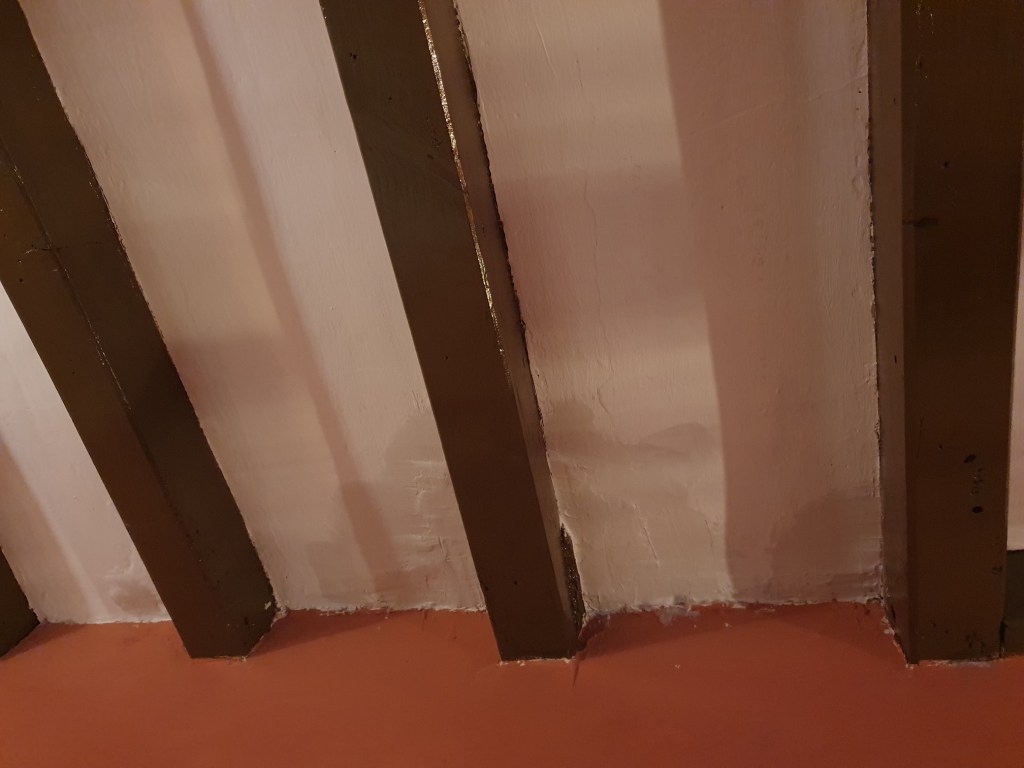 Having some leftover filler I tried to smooth out some lumpy patches on the ceiling. Clearly a poor repair, before our time, we’d ignored it as none urgent, but I’ve been finding it more and more irritating, so filler it is.