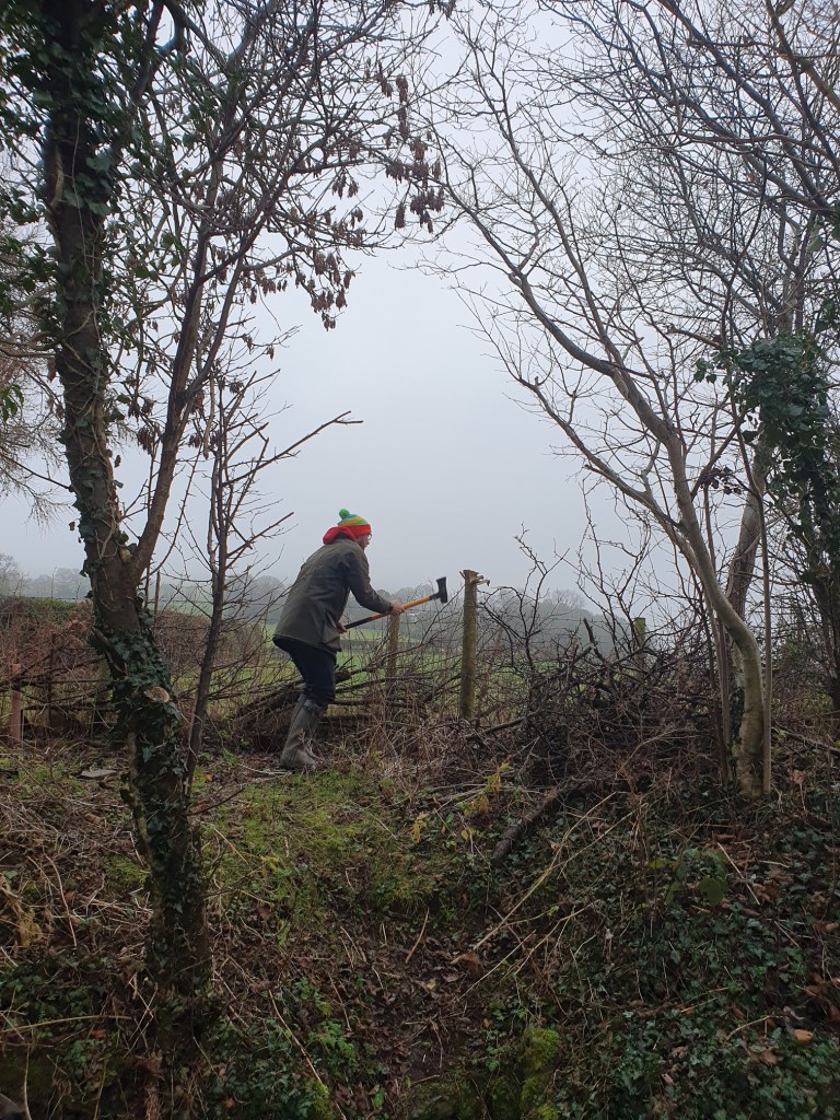 While I was labouring away inside, Chris had opted to brave the rain outside the house, working first on his car before moving on to give the hedge its winter cut. Cutting back the laid hedge will encourage it to thicken up, which will make it better for wildlife in the long-term. Cutting every other year once established can also be beneficial to leave berries in place through the winter.
