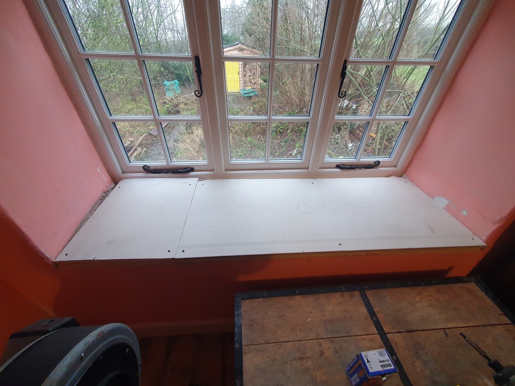 Having finished the kitchen floor I moved on to more windowsills. I decided to focus on the two windowsills in the study. I managed to reuse the template from the bedroom, with a small addition needed, for the large windowsill.