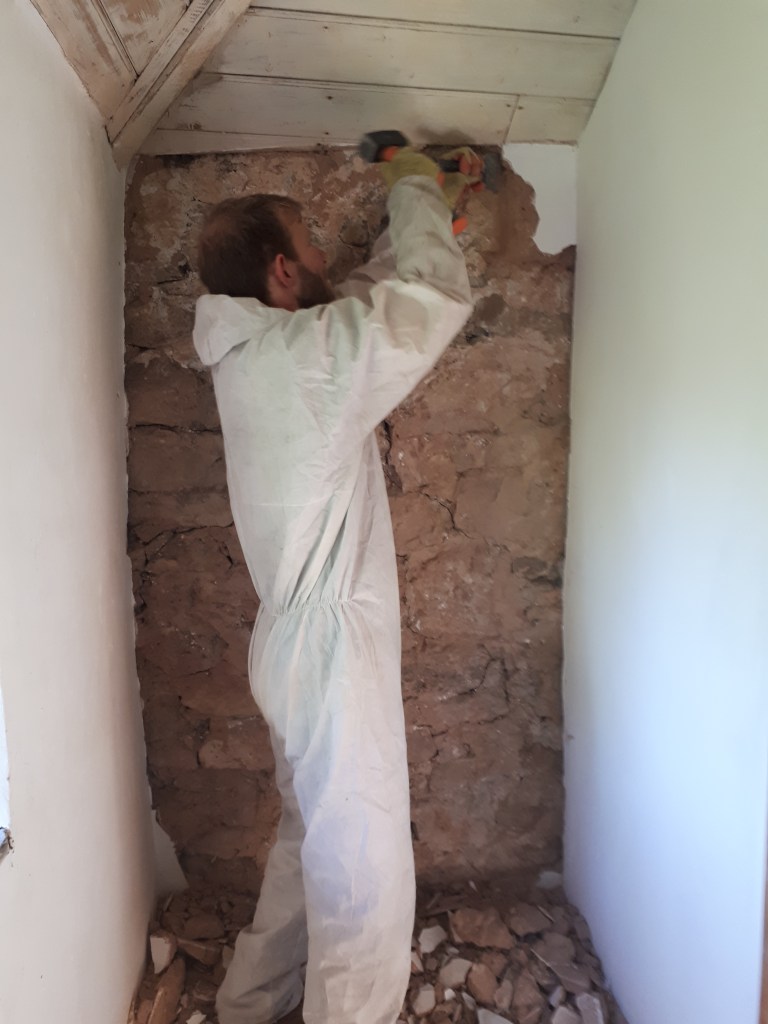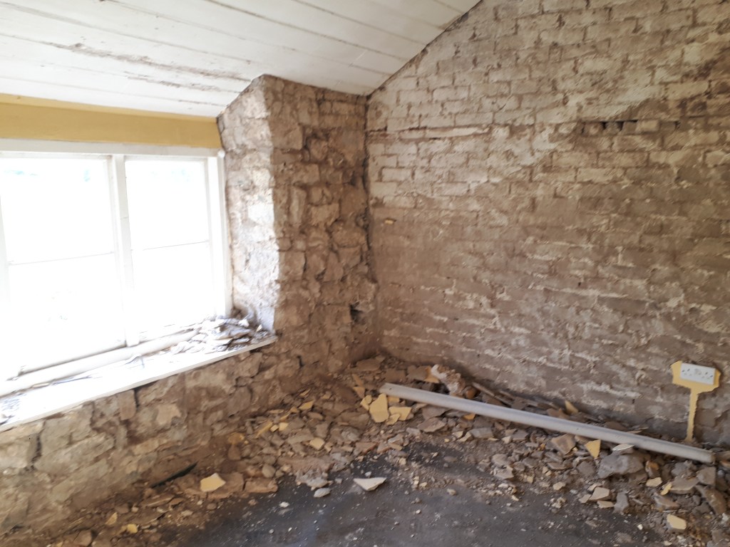 So our first job was to take a lump hammer and chisel to the walls.