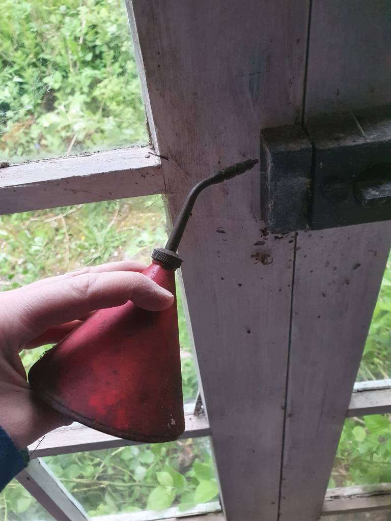 Rehoming the old items from the house continues with the old bed finding a home in someone garage (we decided not to ask why), while the ancient oven was taken to help cure motorbike parts. My new favourite item is an old oil applicator can. Chris can’t understand my fascination, but this small object takes me back to Sunday morning cartoons with hero desperately trying to fix his plane, car or train. Perhaps the magic oil can will help fix up our ruined home?