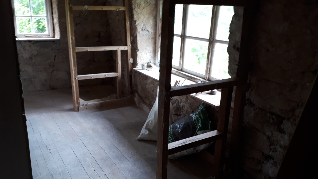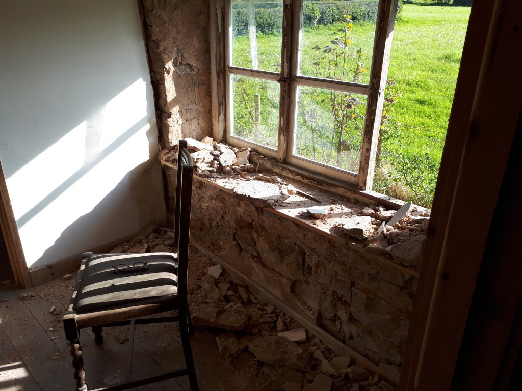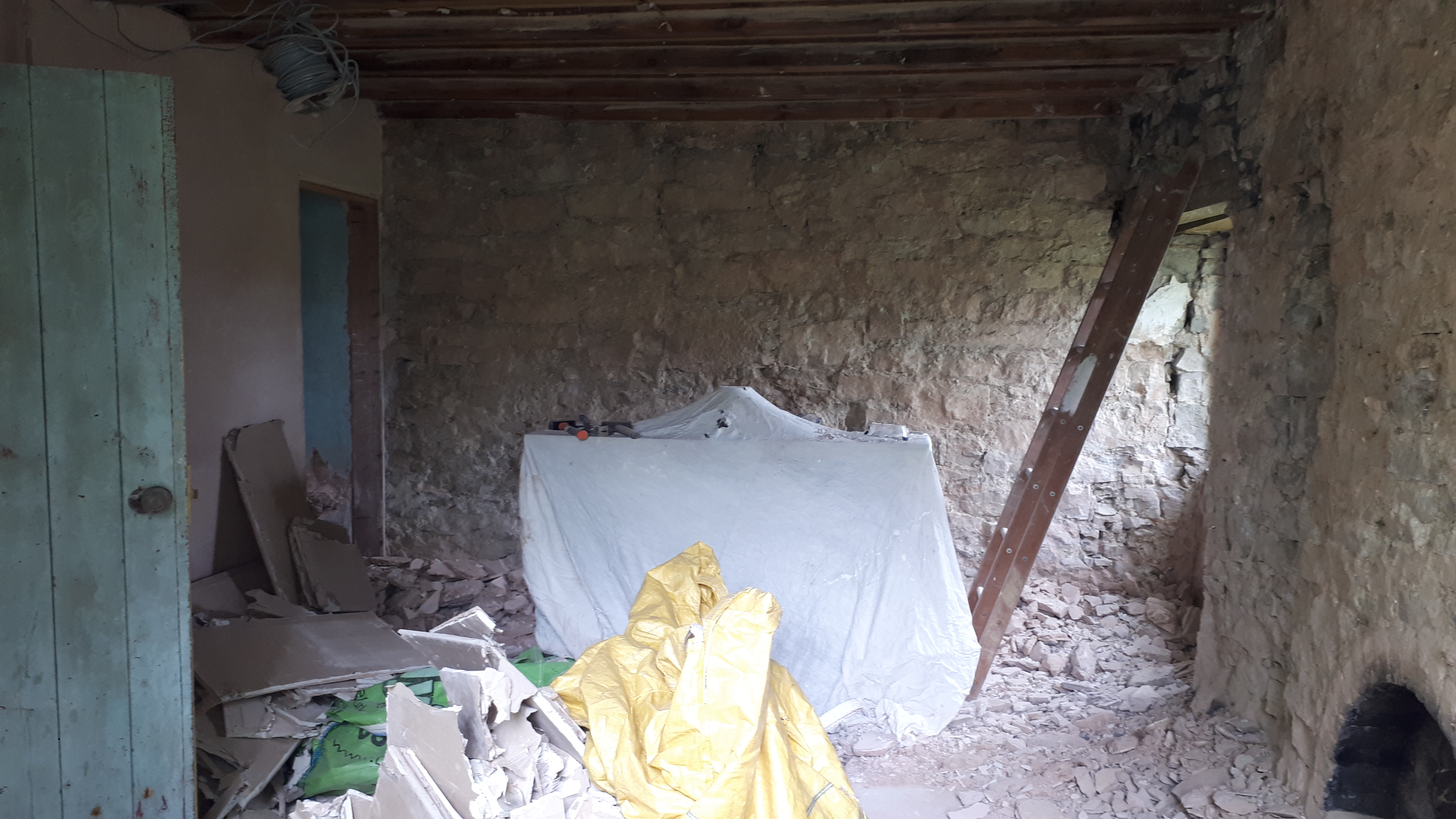 Although not necessary as part of our replastering works we also cleared the plaster off an old brick fireplace in one bedroom, and an internal wall in the dining room. While exposed stone on external walls could reduce the effectiveness of our insulation, this isn’t such a big issue for internal walls. Therefore, we are leaving a few key features exposed to add to the texture and character of the house.