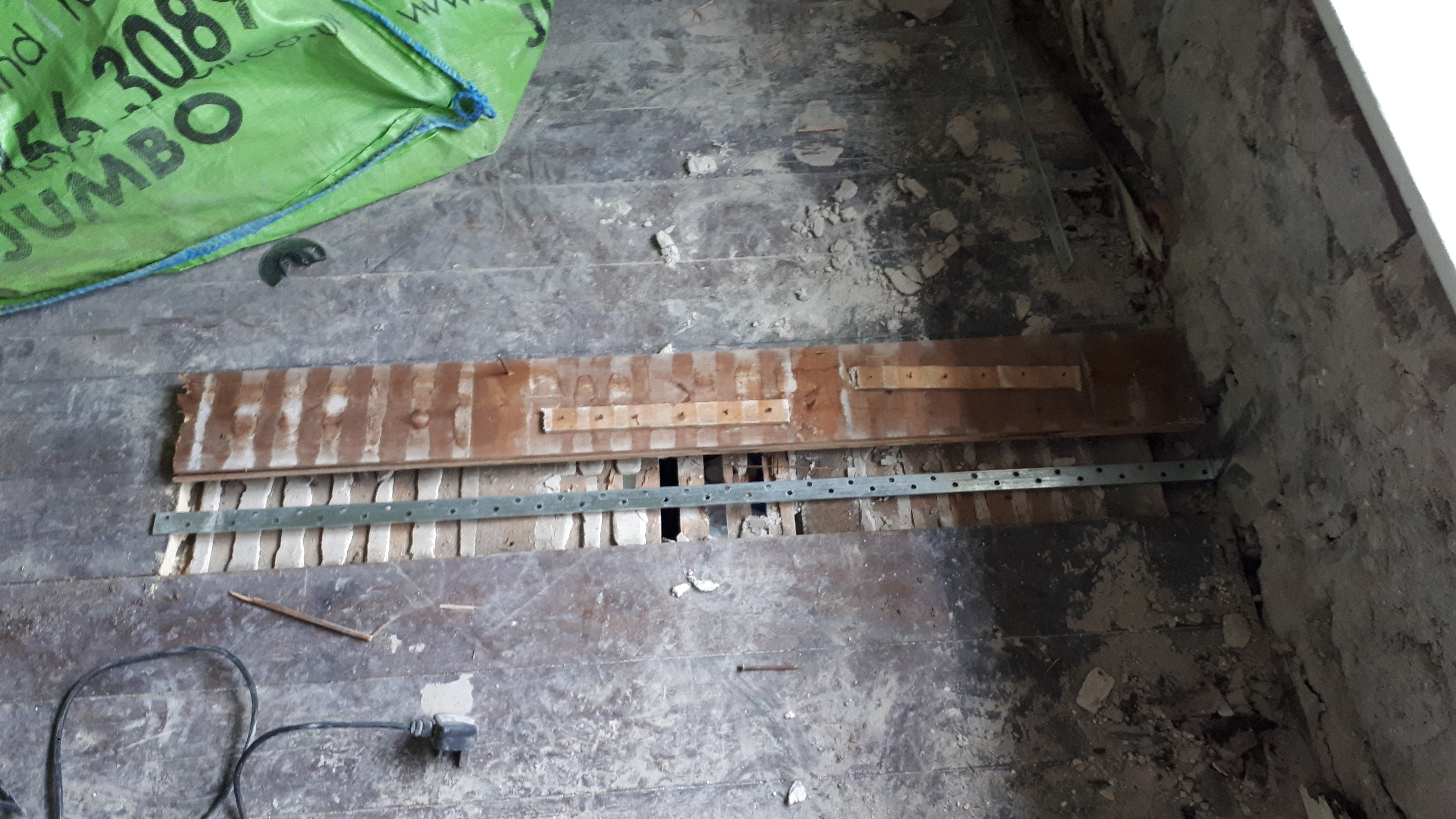 But by far the winner of the week’s DIY jobs was the replacing of our first lintel. While luckily most of the lintels have already been replaced in the Erw Helen side of the house (the house once having been two separate residences), it seems the Sunnyside half had very little maintenance over the years. In this part of the house the lintels are largely composed of semi rotten, woodworm-riddled pieces of uneven timber.