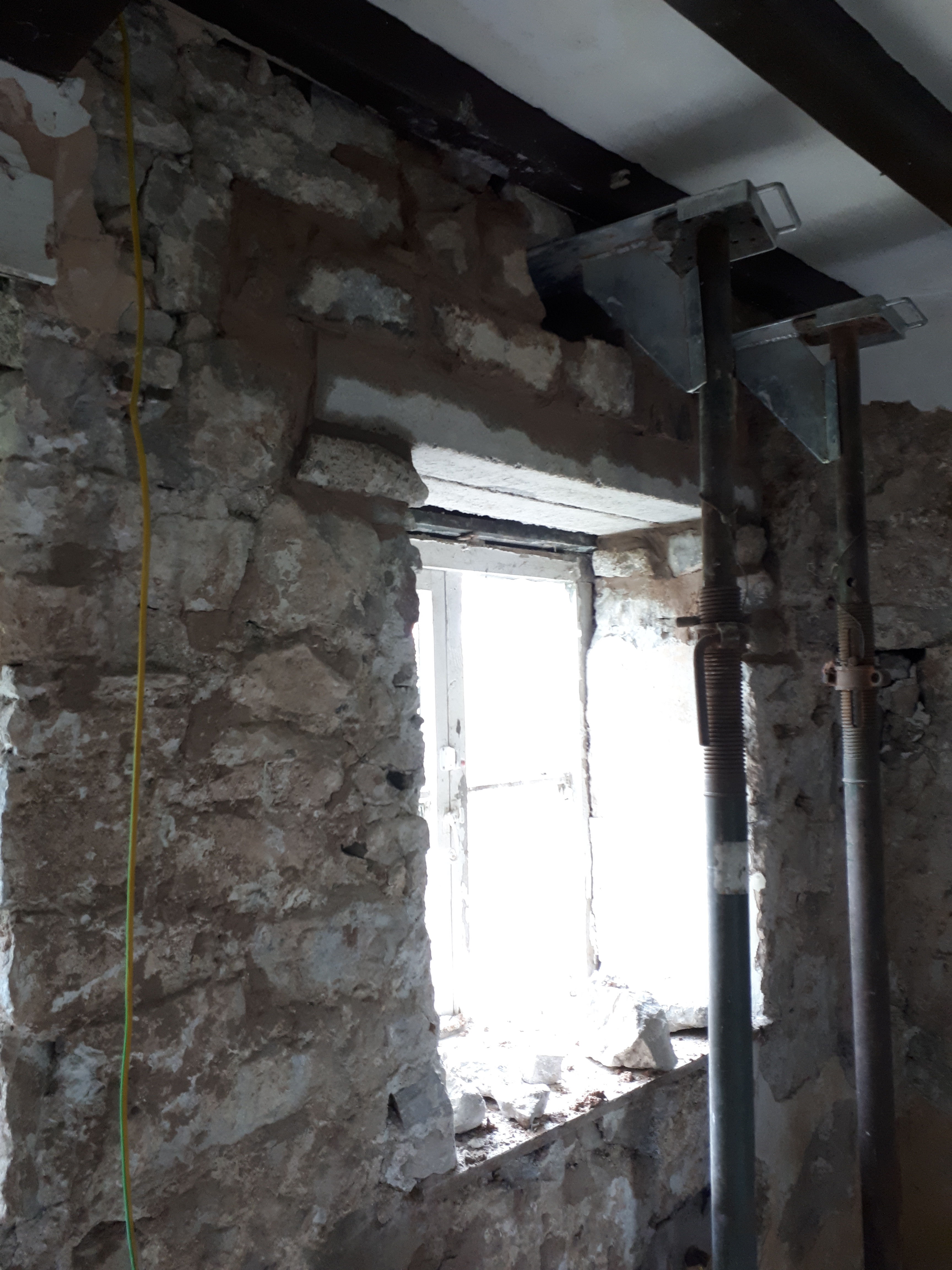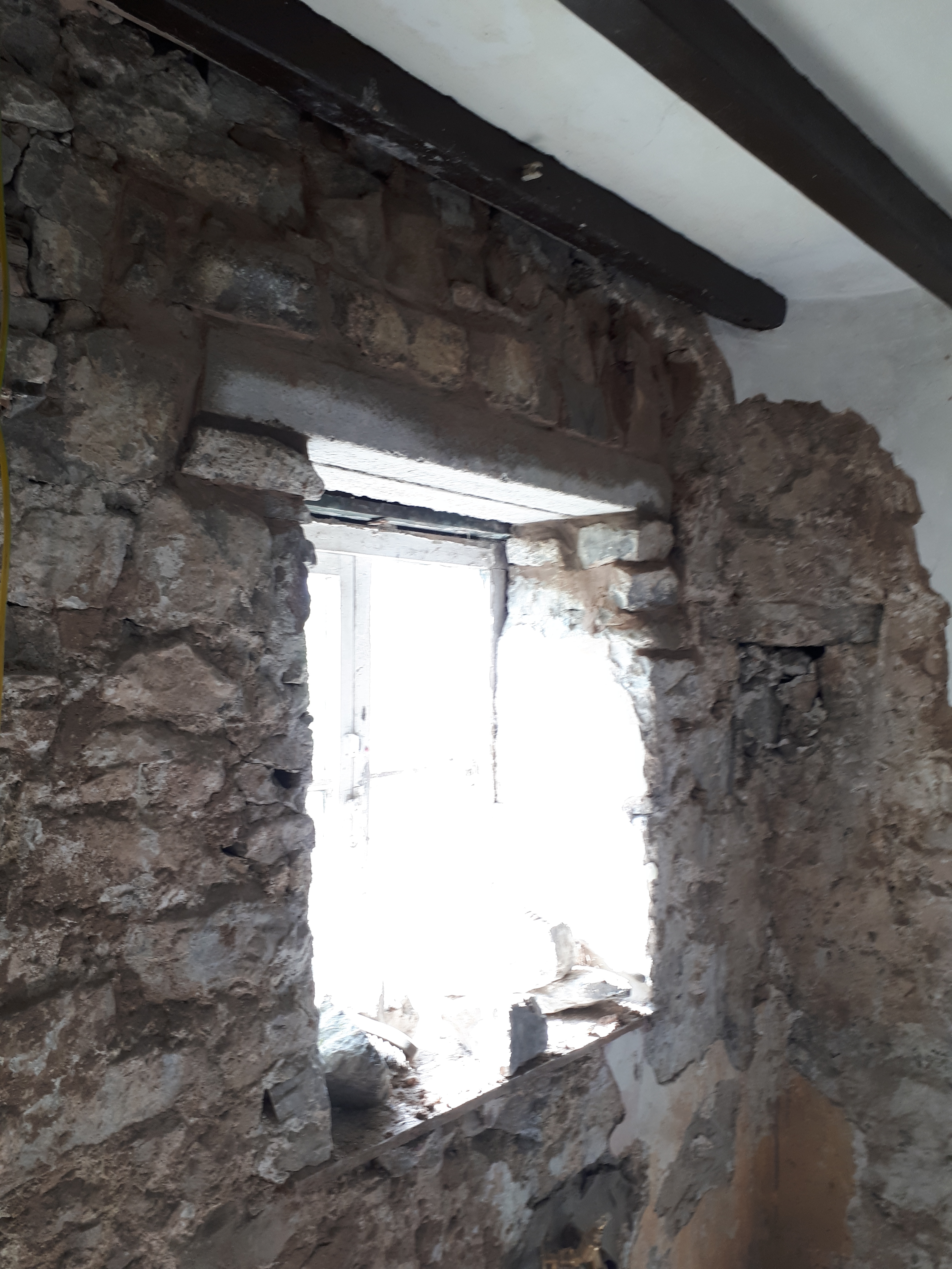 With this first window lintel, the structural safety had been even further undermined by the historical builder only keying the wood in on one side of the window, the other end resting by its very edge on the stone below.