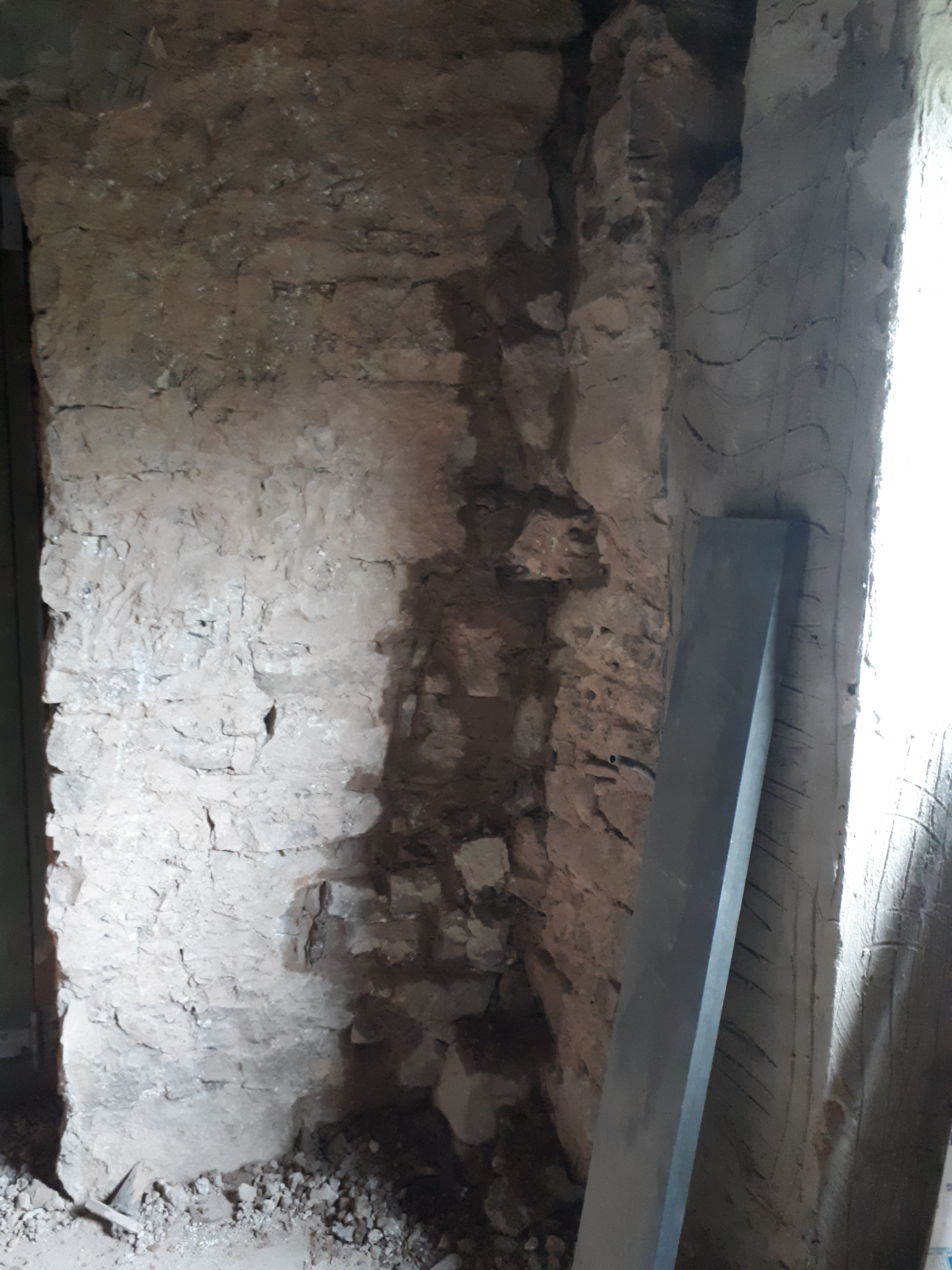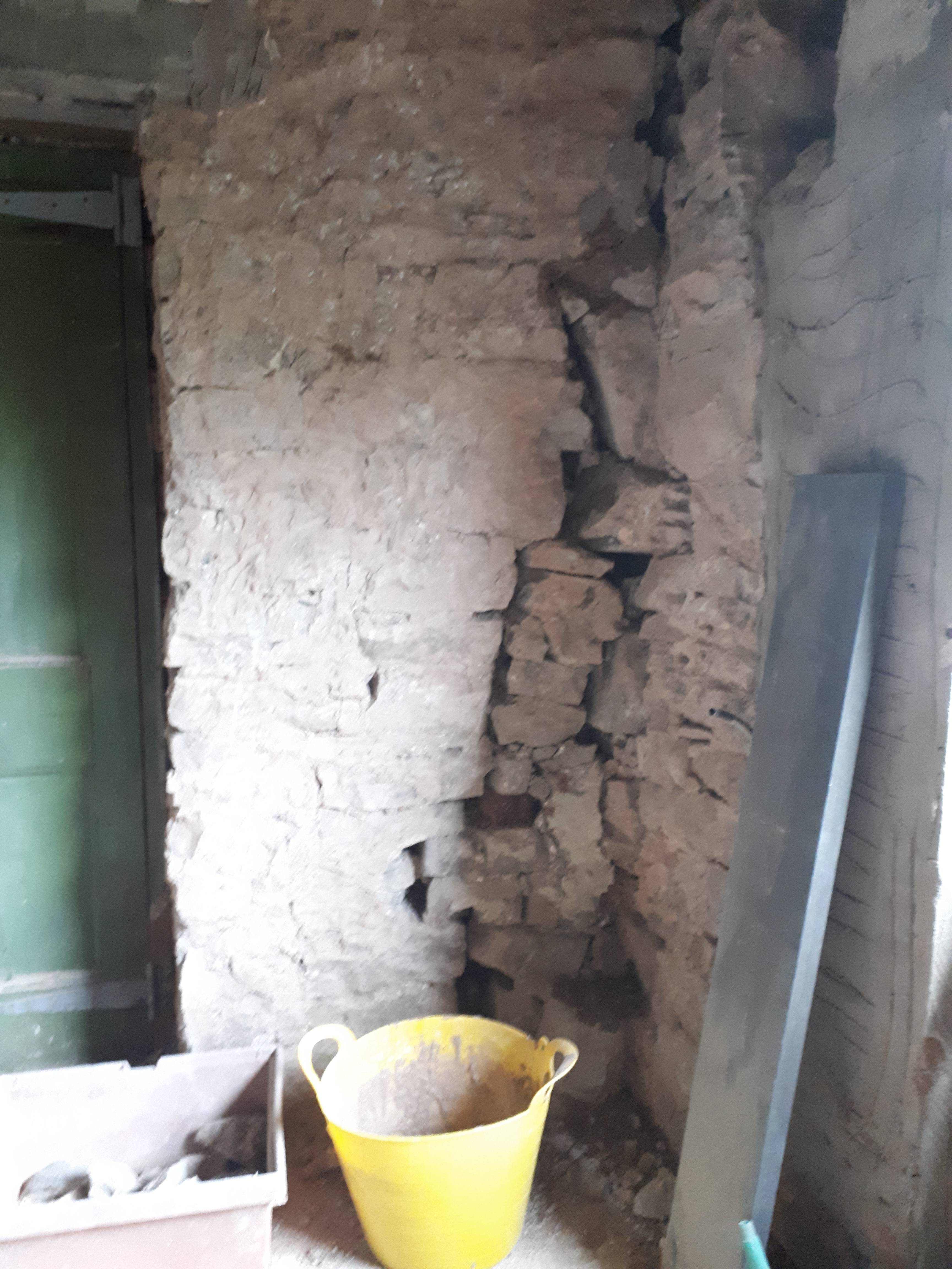 Some good news is that our visit from a structural engineer went well, with her stating that only one of the big cracks in the walls was a concern. Having repacked and repointed this huge gap in the corner of the room, we will need to buy and attach another metal strap to stop any movement.