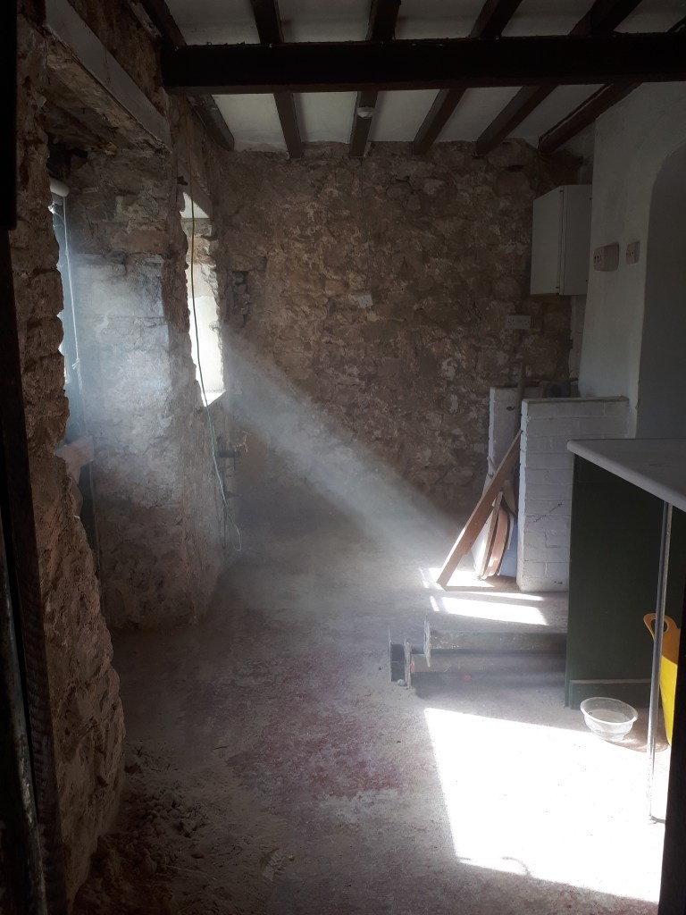 Having inspected our already partially deconstructed home, the funders offered to pay for the insulation and plastering of all our external walls. Having weighed he pros and cons, the cons being it wasn’t the type of insulation we had originally decided on, the pros being a massive cost and time saving, we decided to accept their offer. Yet, what this means is we need to have the external walls ready for insulation and plaster much sooner than we expected. This means getting all the repointing, installation of new lintels and electrics done ASAP.