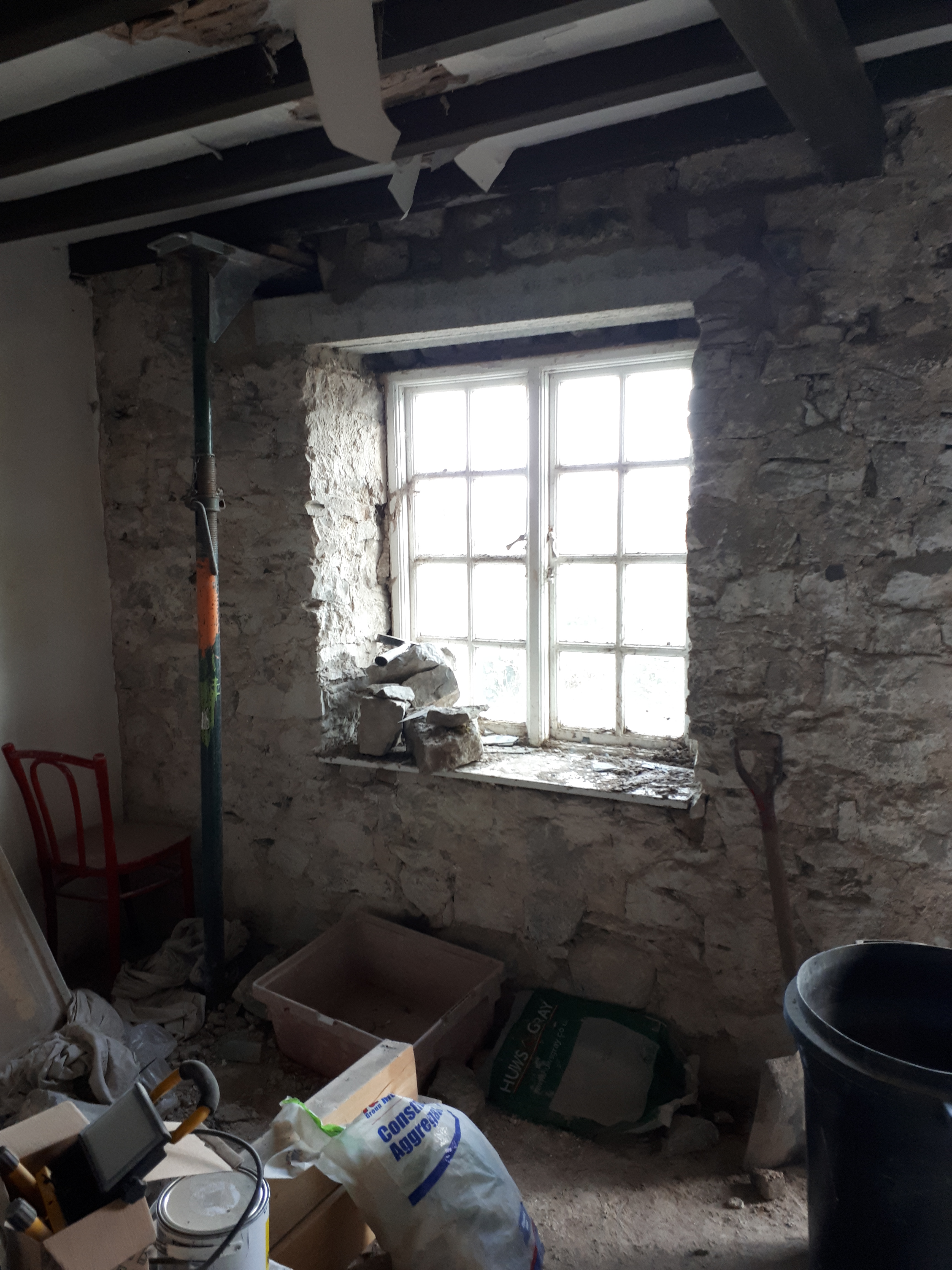 In a day and age where you can order almost any variety hot food to arrive at your door within the hour, or get next day delivery on anything from socks to craft scissors, it’s frustrating that building materials can take days or weeks to appear. Despite only having a small area of the roof left to slate, the delivery company weren’t able to get slate hooks to us in time for the weekend. So as annoying as it is, we started on a few other jobs.