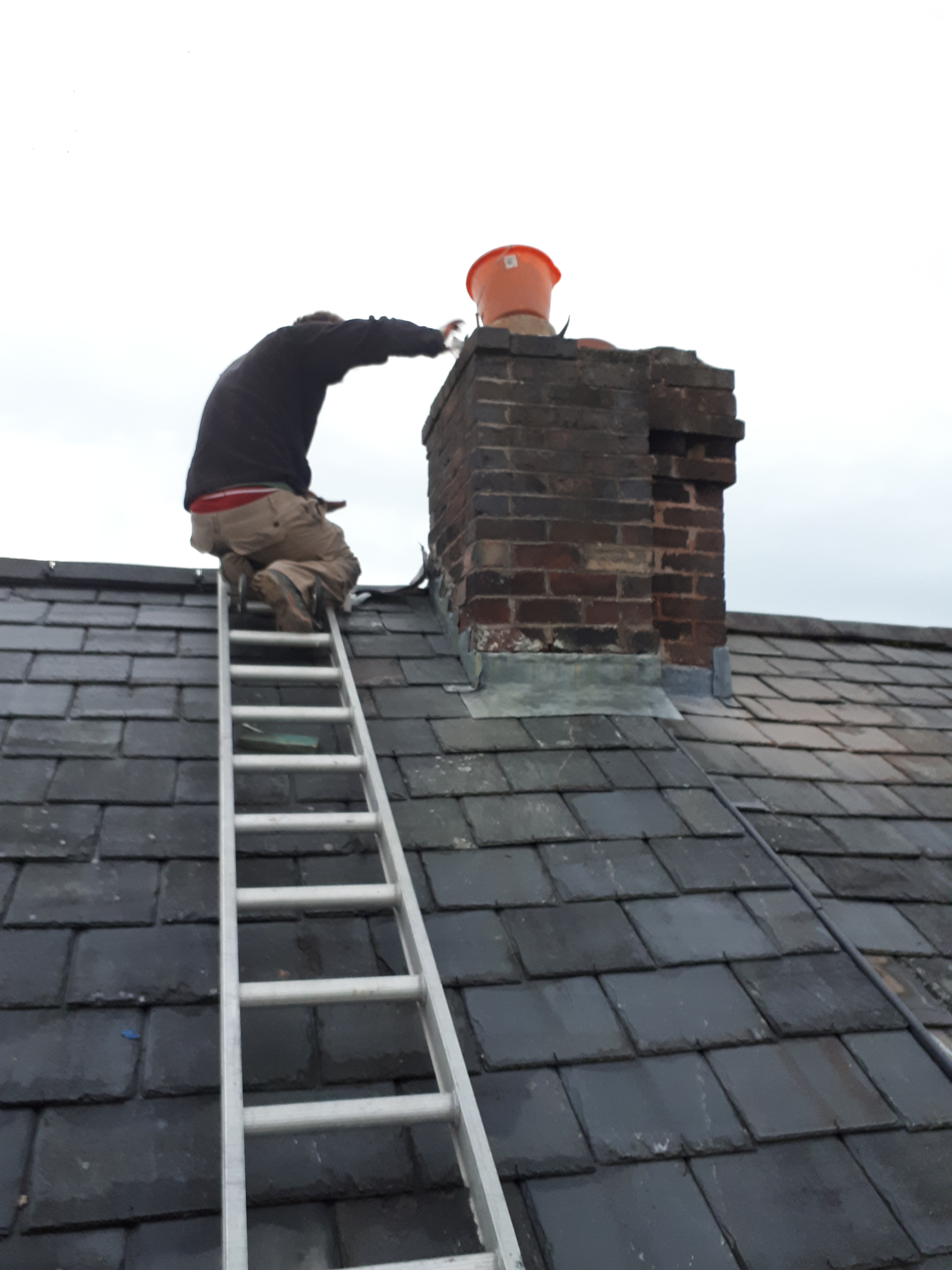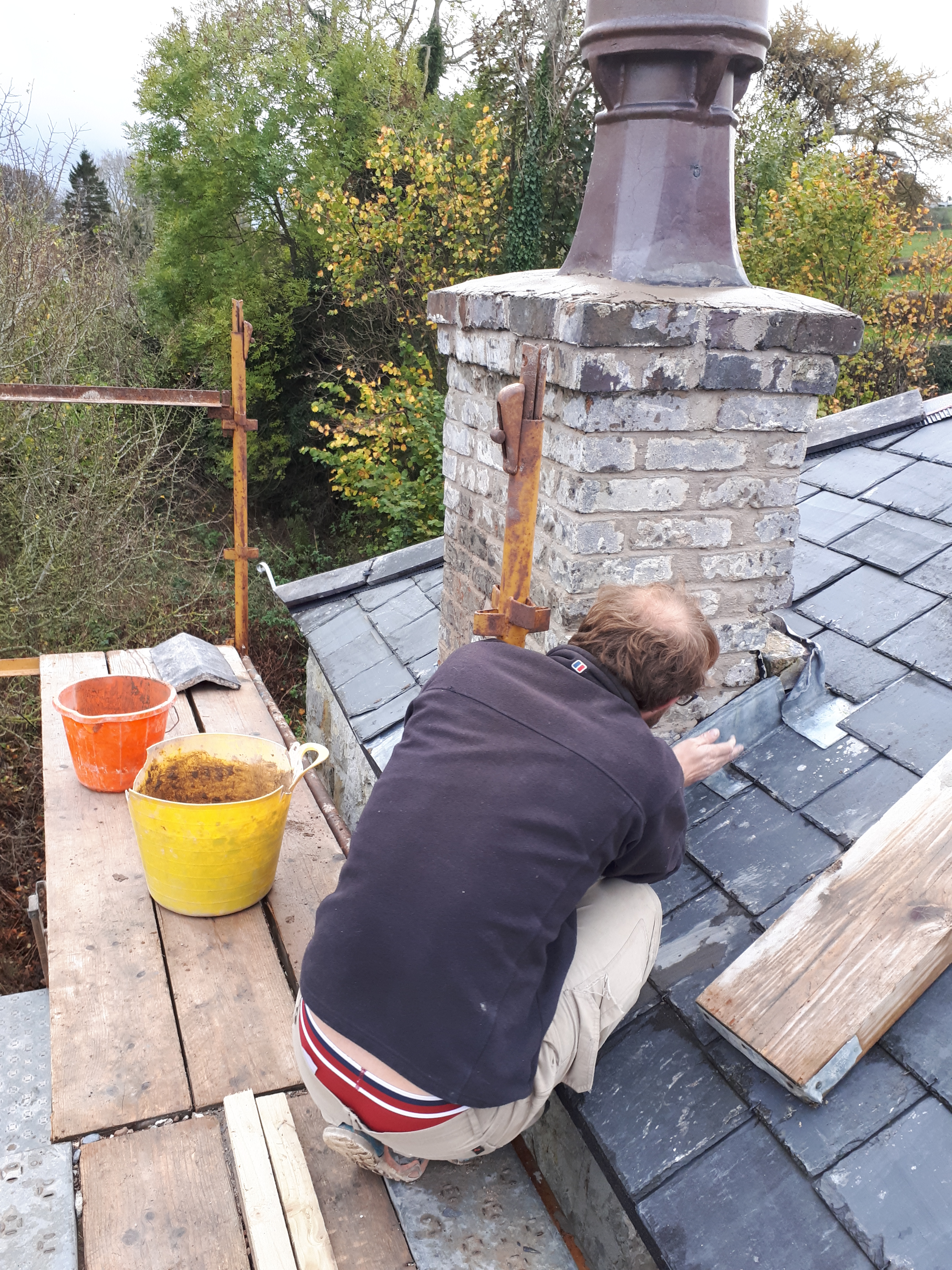 Our final task on the roof was finishing the lead, and adding fresh mortar around the chimney pots. Having run out of ingredients for the mortar, I stopped by our neighbours to borrow a cup of… cement. Luckily for us she too is in the middle of a spot of DIY and had enough to share.