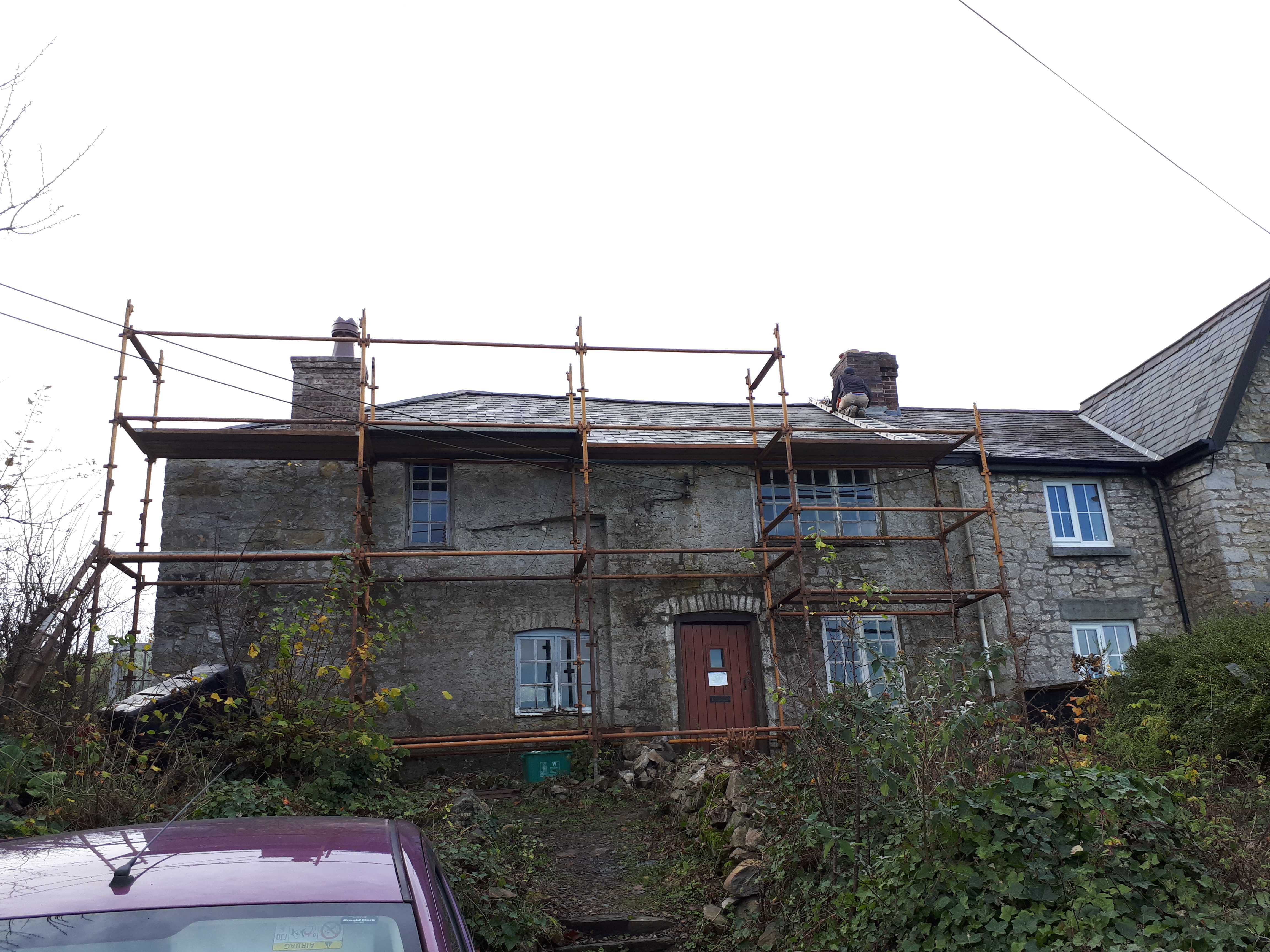 Right back at the start of our renovation, one of our first jobs had been to collect a van-full of secondhand scaffolding. From unloading the van, to putting it up, to taking it down, moving it and putting it up again, assembling and disassembling the scaffolding has been one of the most exhausting parts of the renovation. Not only that but it was the activity I was most convinced would lead to broken bones. After all clinging to a rusty pole with one hand while hitting another rusty pole with a lump hammer in the other hand, all while several meters off the ground, just seems like it should end in disaster. Yet here we are, the scaffolding coming down for the last time, and no broken bones. There were, all told, quite a lot of scaffolding related bruises, and one or two near misses, but all bones thankfully intact.