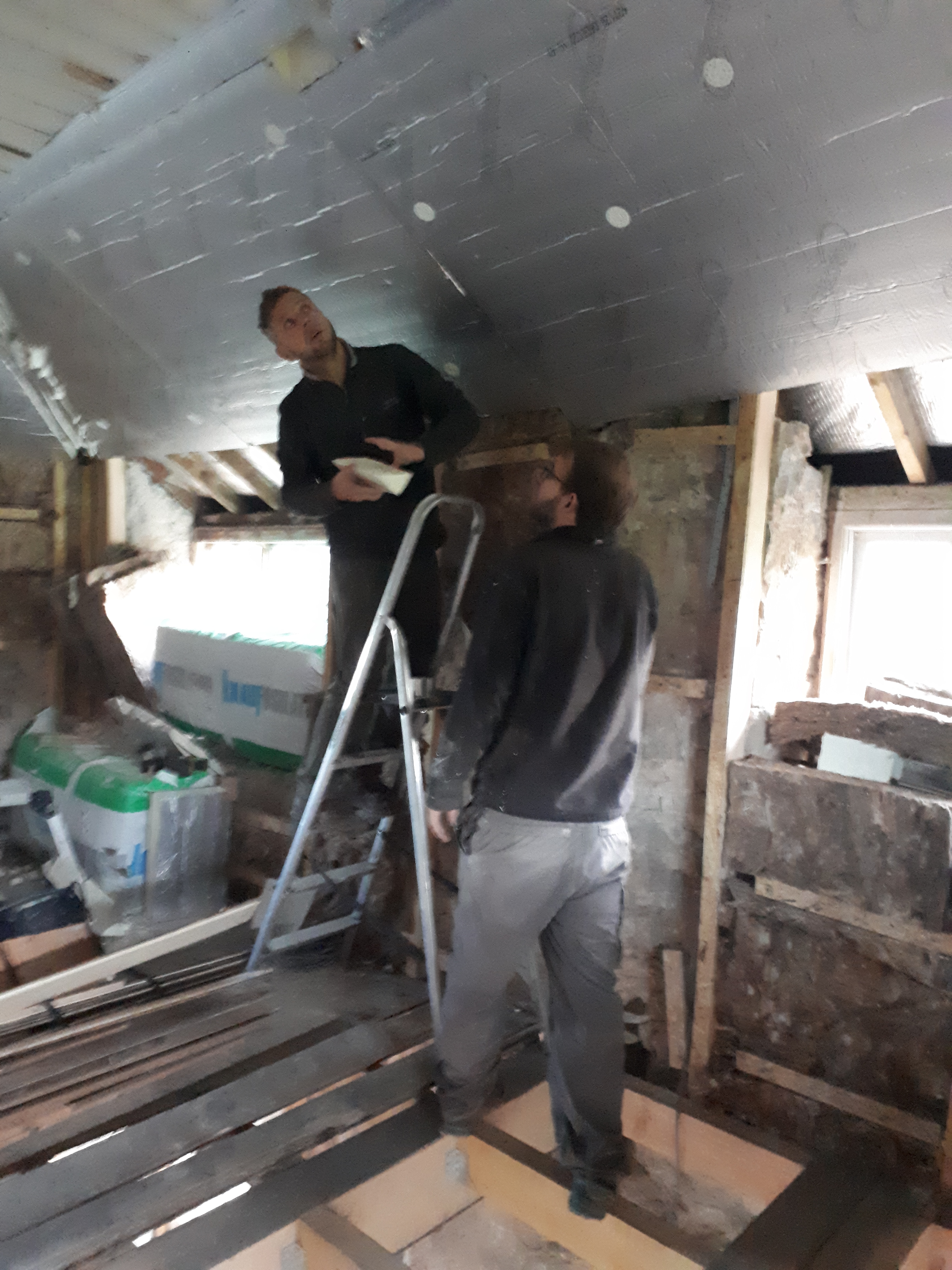 We started our time off with a job that had previously frustrated us; the insulation. Luckily the curse seemed to have been lifted, and we managed to get all the boards up on the various eaves in a day.