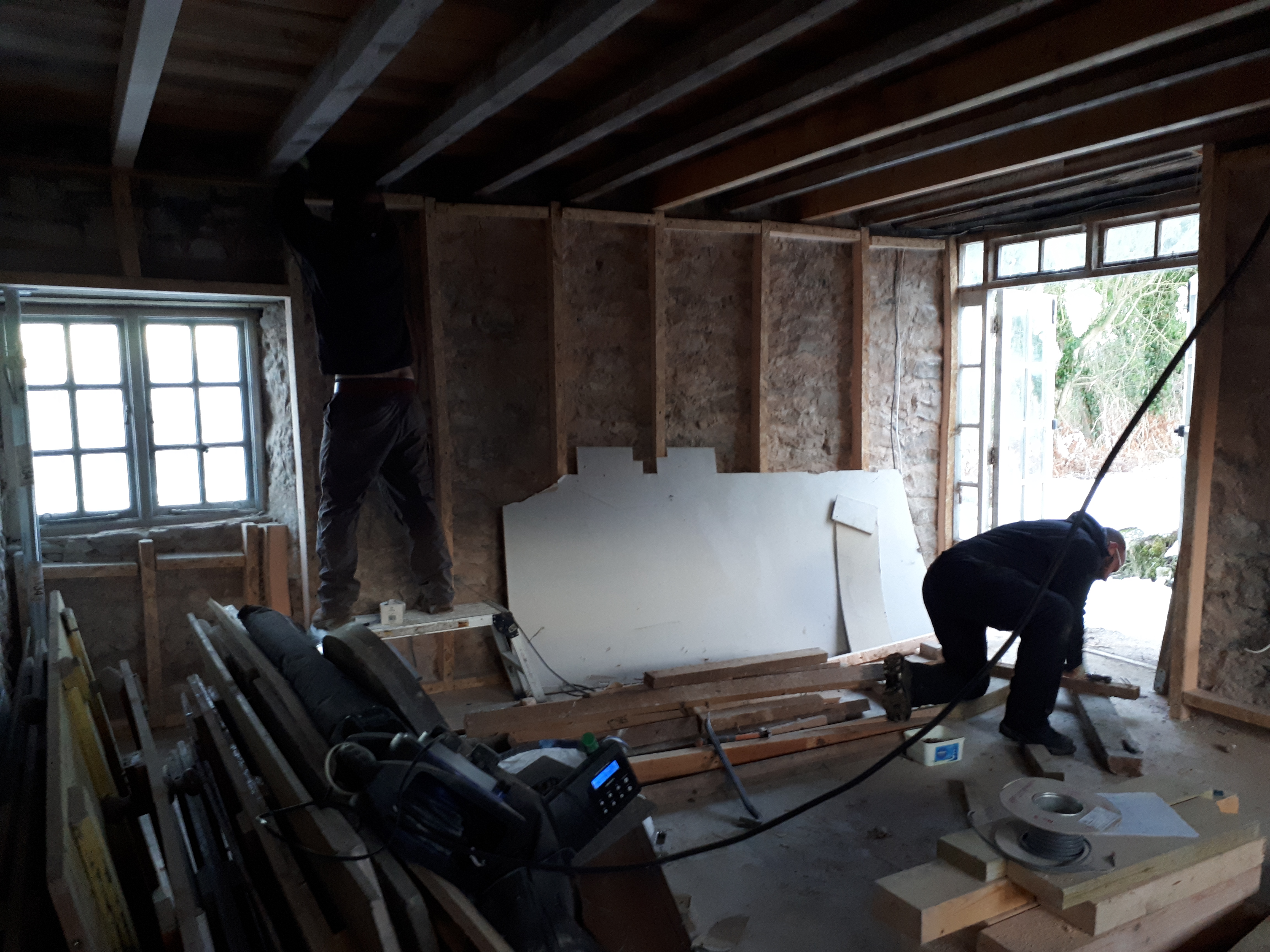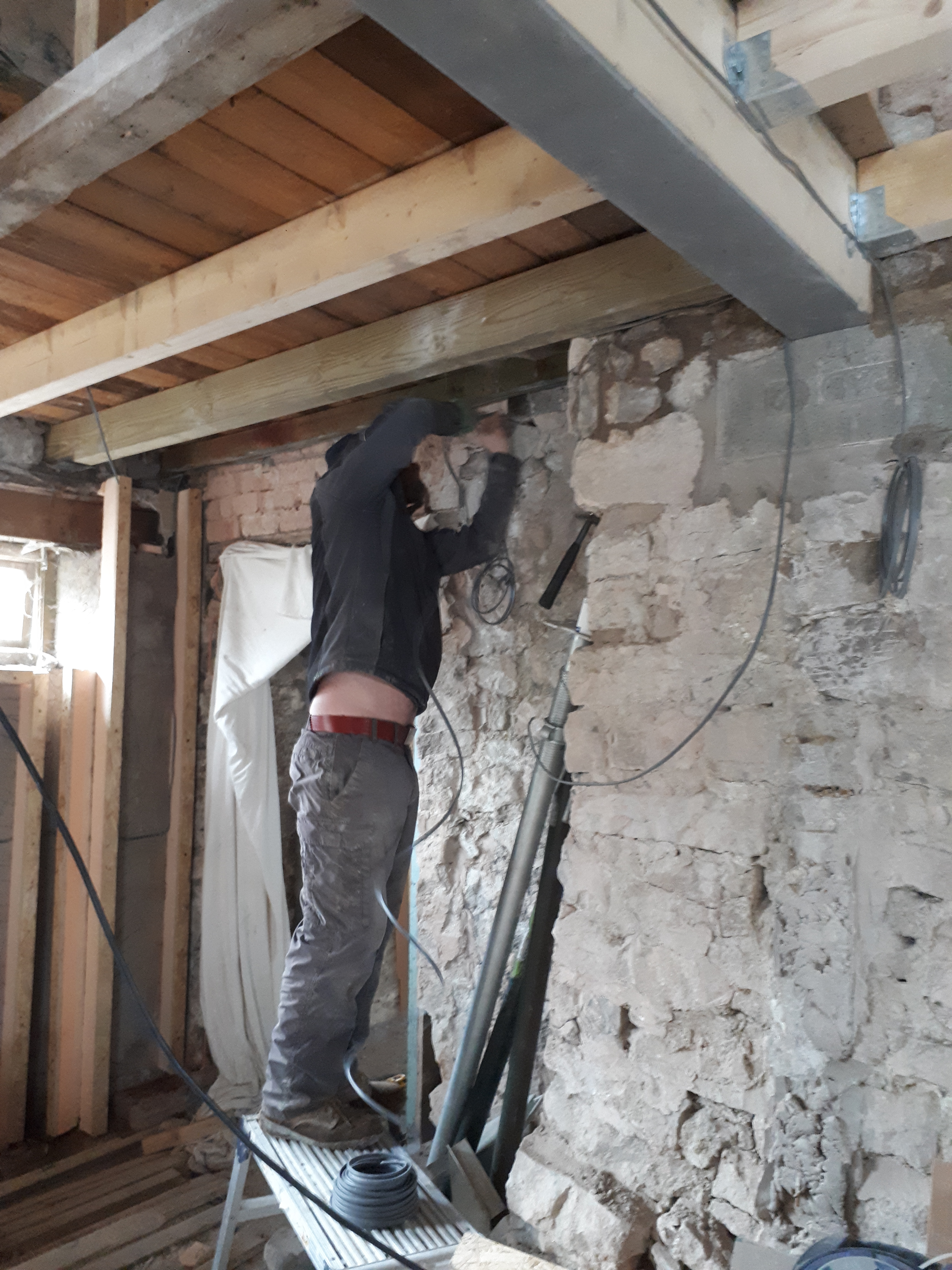 With the chimney inspected Luke and Chris went back to electrics, laying the complex lighting cables across the house.