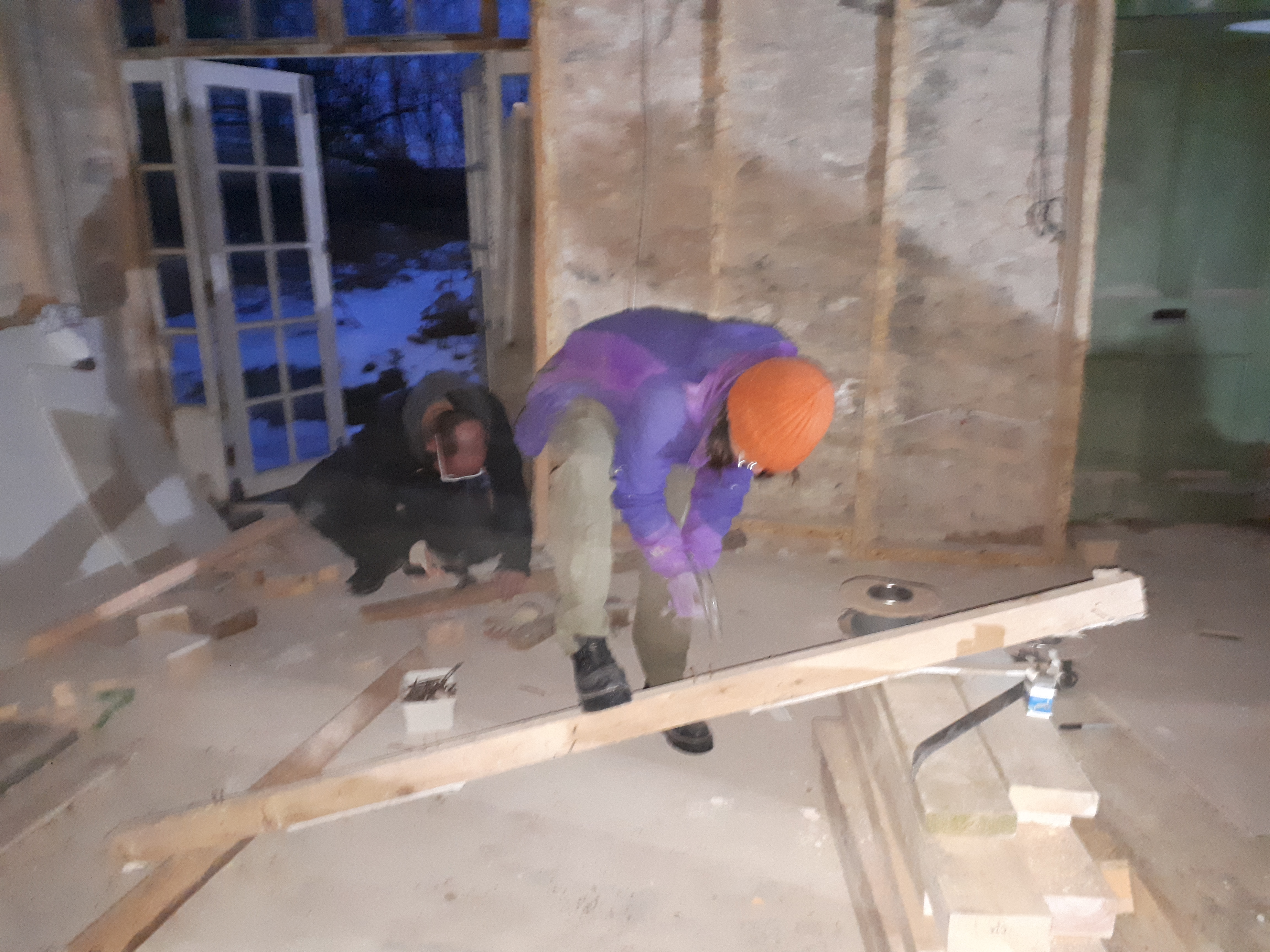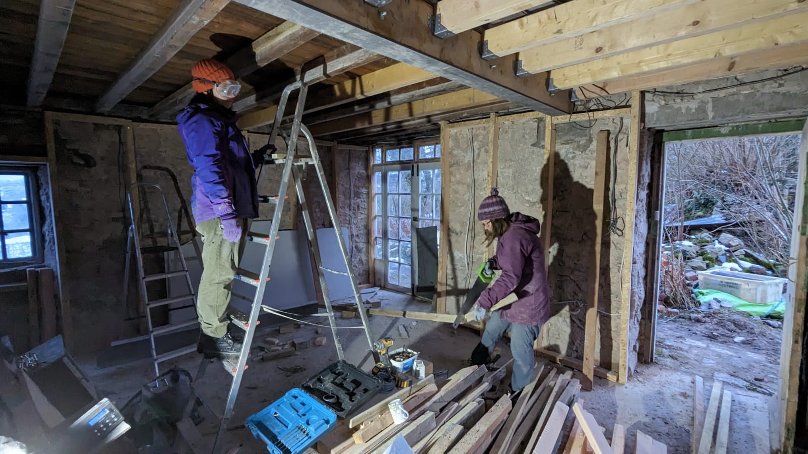 Towards the end of the day the cavalry arrived, with my brother Luke and my sister Anna appearing to lend a hand. They got to work denailing the remaining woodpile, ready to be reused in and around the house. Though adding some work in the short -term, such thrifty recycling is saving us a small fortune in buying new wood.