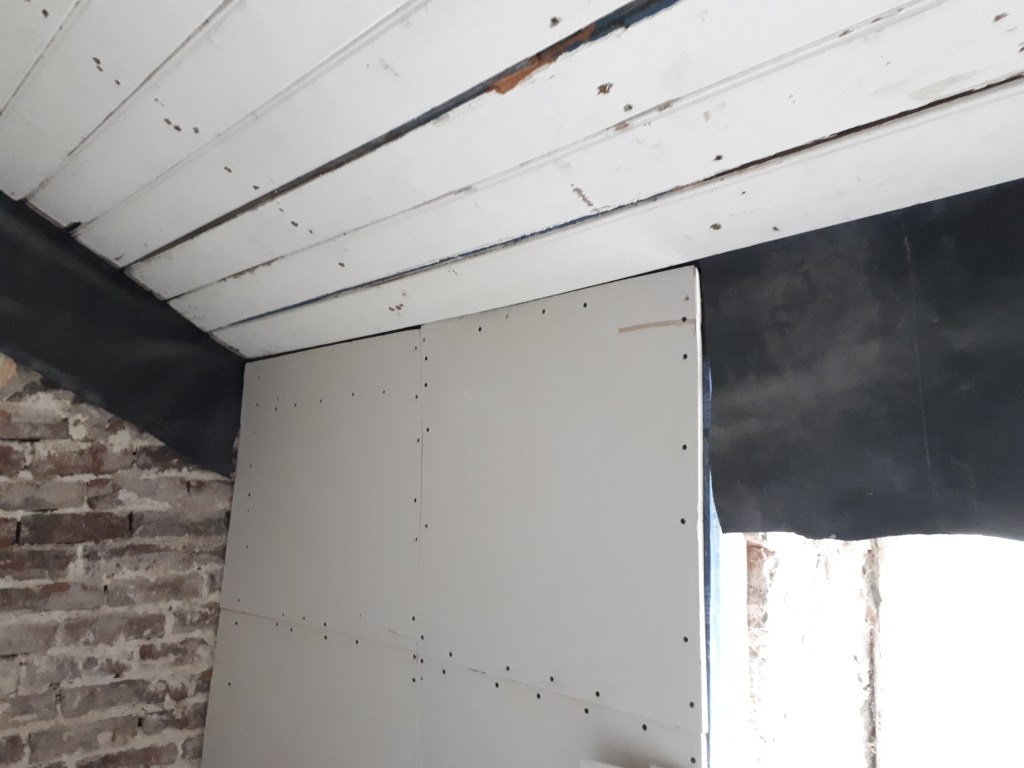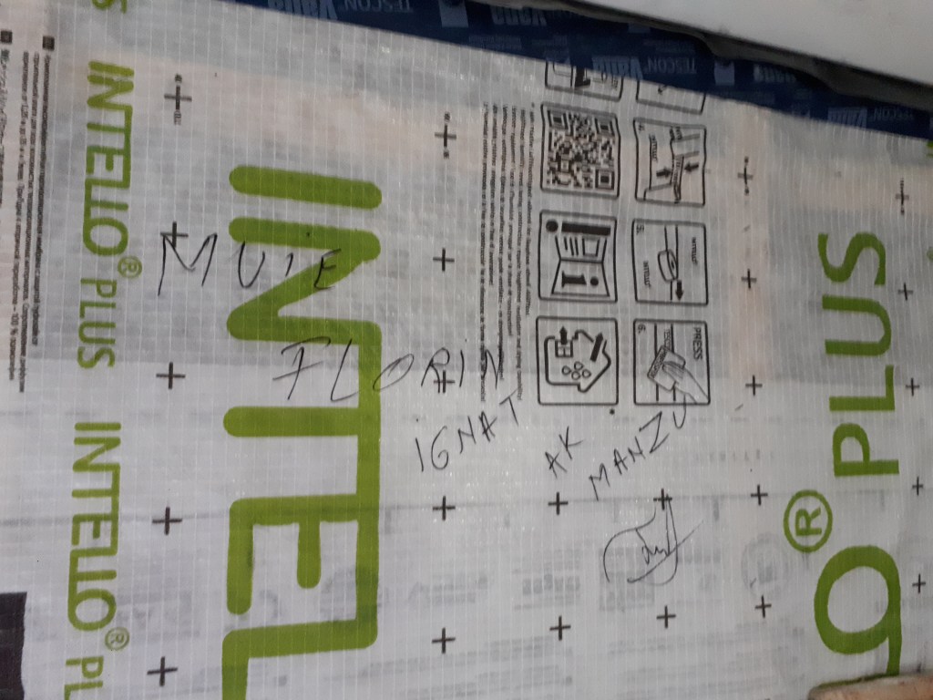 Inside the house I found the insulators had left their mark in a more pleasant way. After we placed plastic sheeting on the ceiling as a vapour membrane, the insulators were supposed to stick their wall membrane to it before adding the plaster board on top. Unfortunately they hadn’t realised that’s what we’d intended, and they put the plasterboard on without joining the two membranes together. To correct this I carefully unscrewed the board to stick down the membrane. What I found under one board was our insulator’s signatures, letting future generations know what they had contributed to the house. There is a long running tradition across the world of craftsman secretly or officially signing off their work. I taped the membranes together avoiding covering their writing, before hiding the signatures back behind the board.