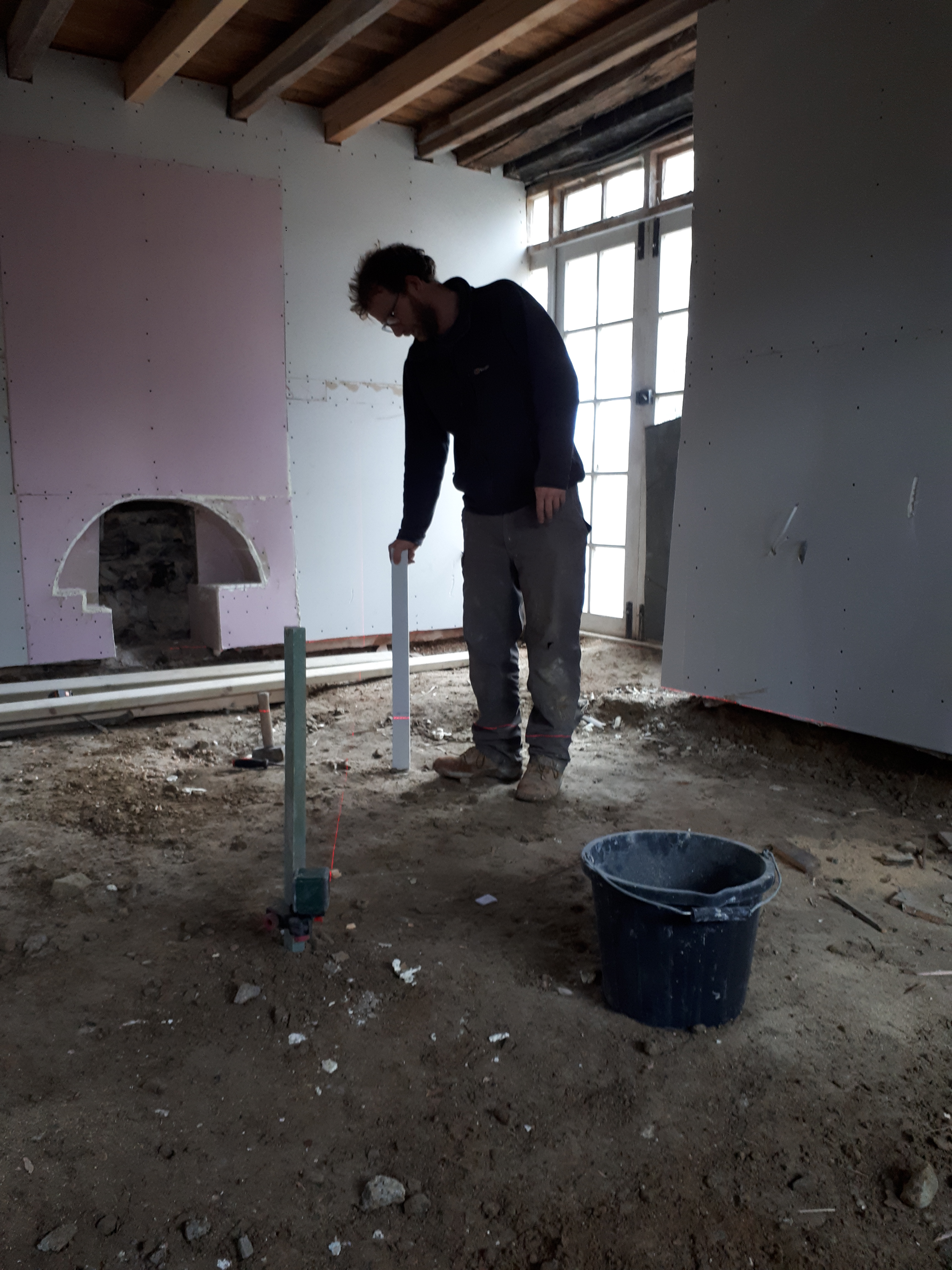 As well as our magically regenerating floor we came to realise that in one corner of the room our stonework stops at a level higher than the final floor level…..hm not ideal. We can’t have the floor level any higher as this will result in stepping down into the adjoining room. After some debate we decided we could create a concrete buttress around this portion of the wall, which would be hidden behind the kitchen cupboards. Hopefully the wall won’t fall down in the meantime…