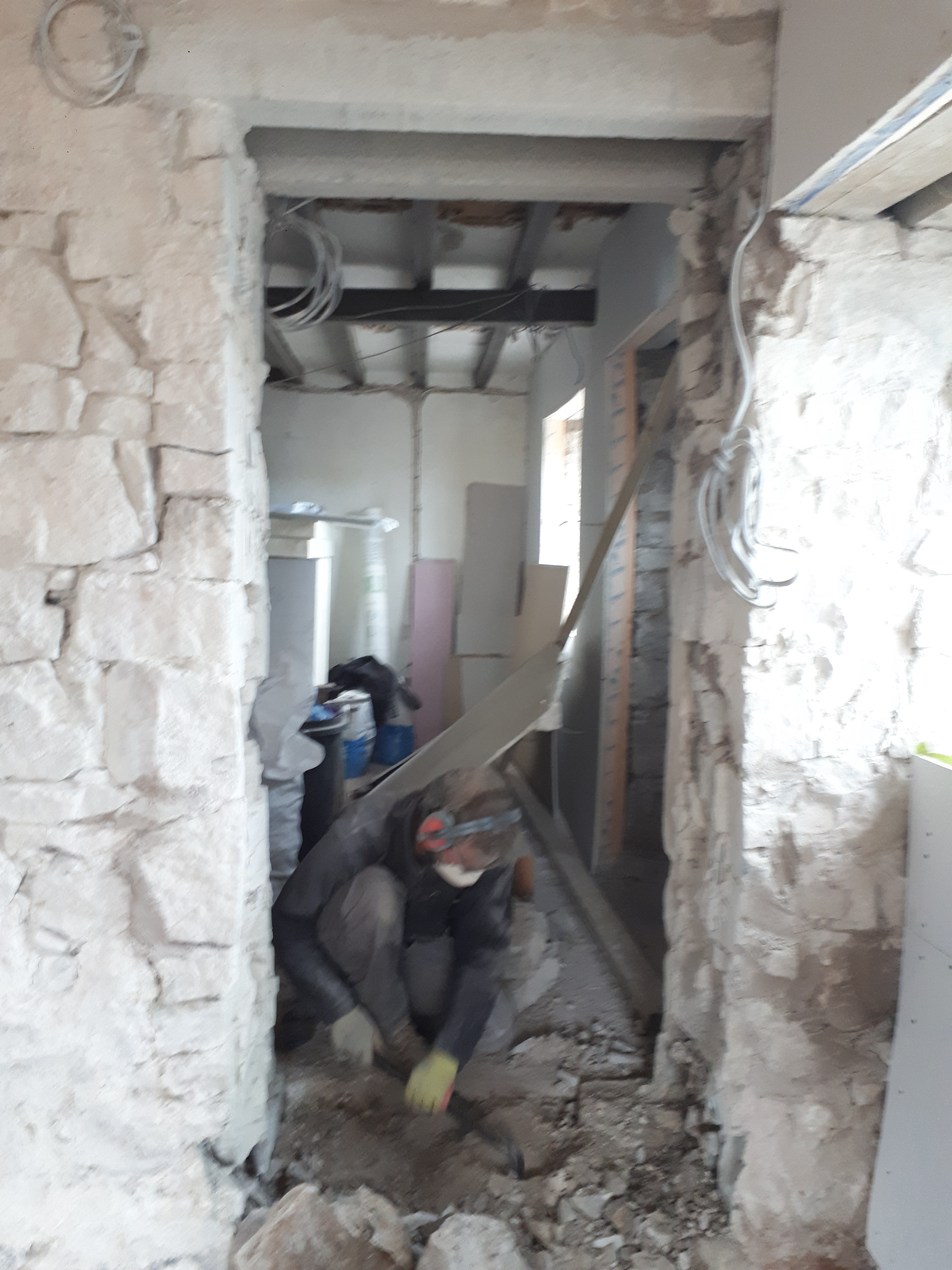 Inside, Chris cut off the last few jagged edges from the doorway, before I stepped into repoint the loosened rocks.