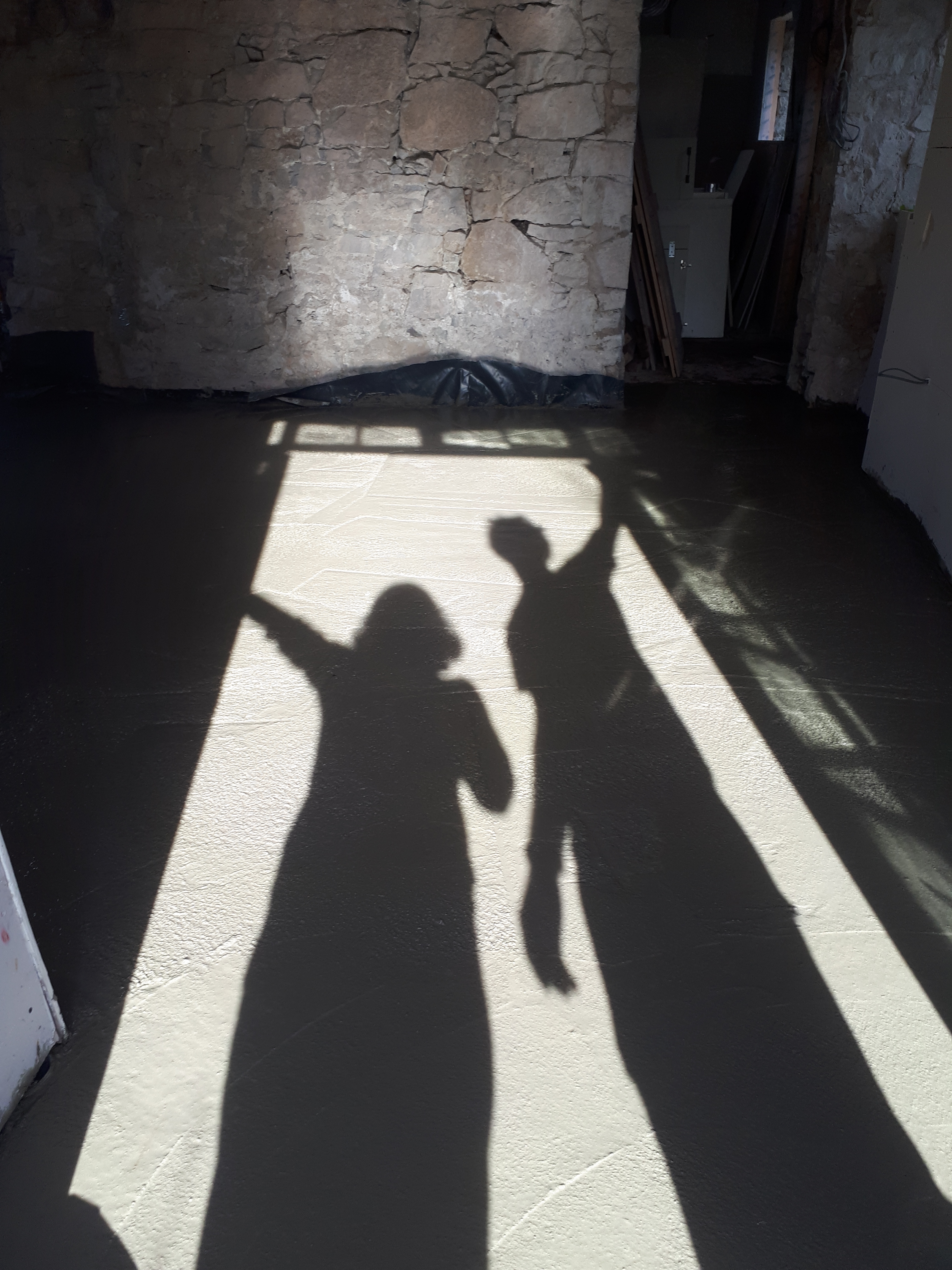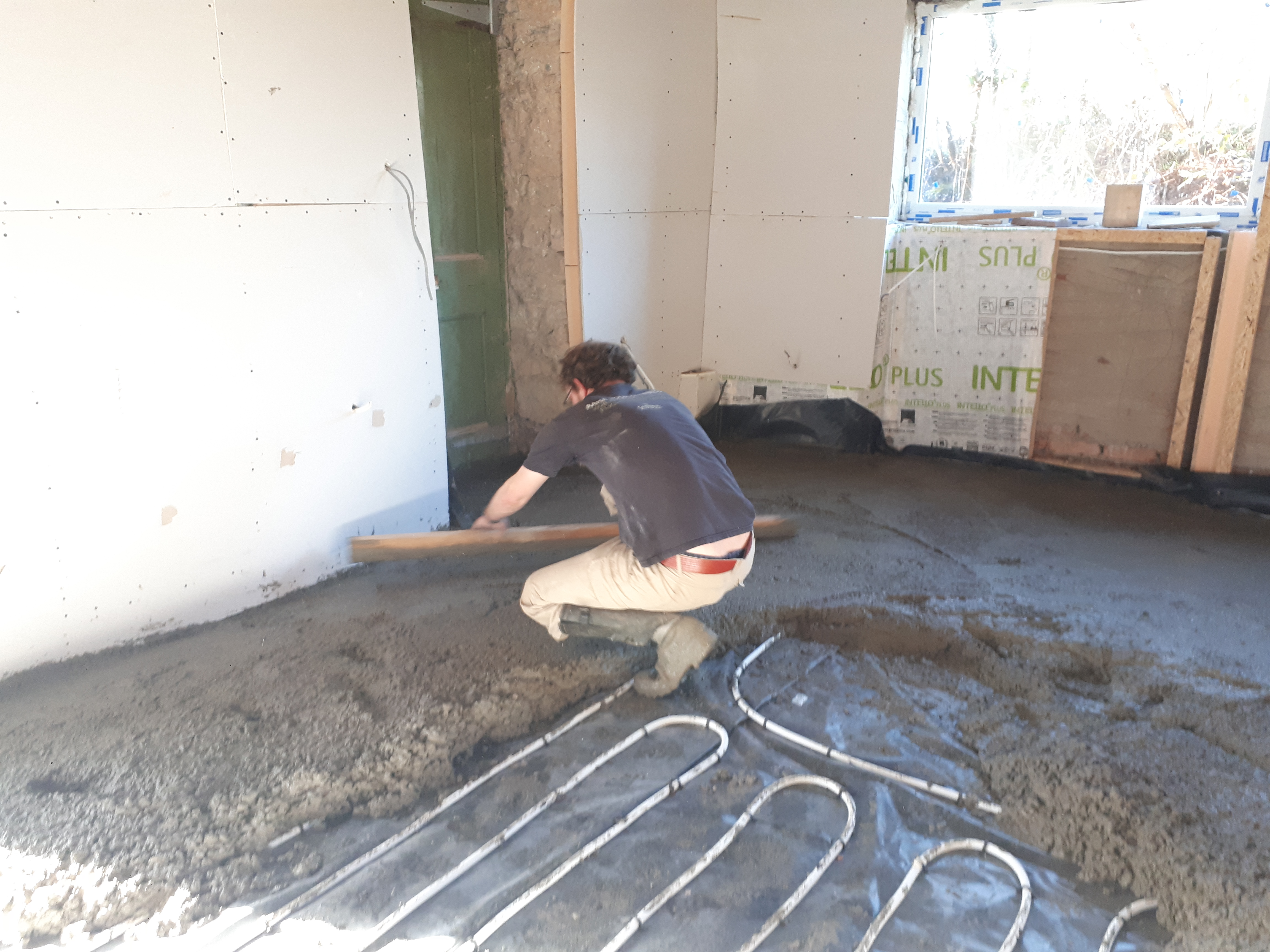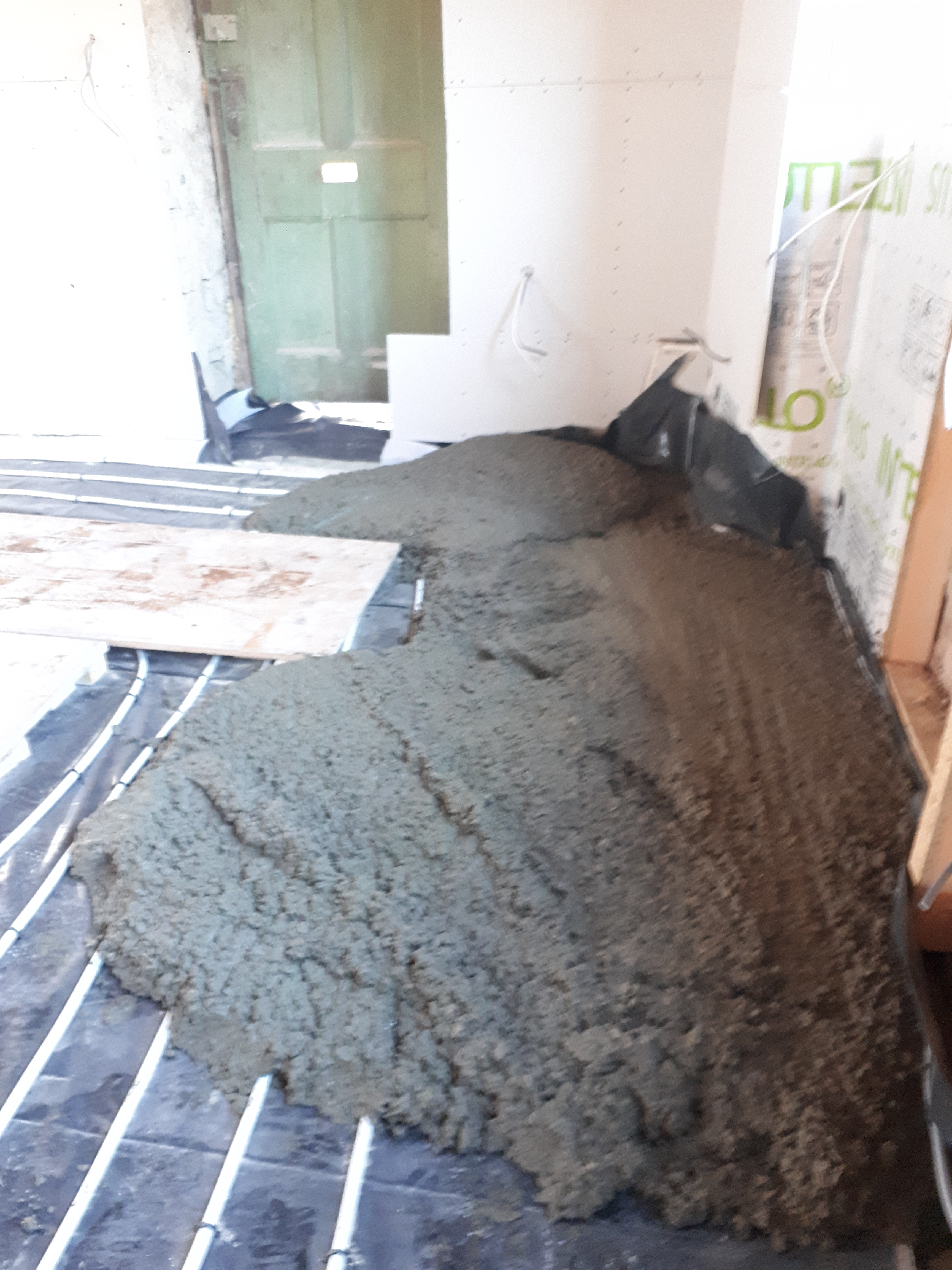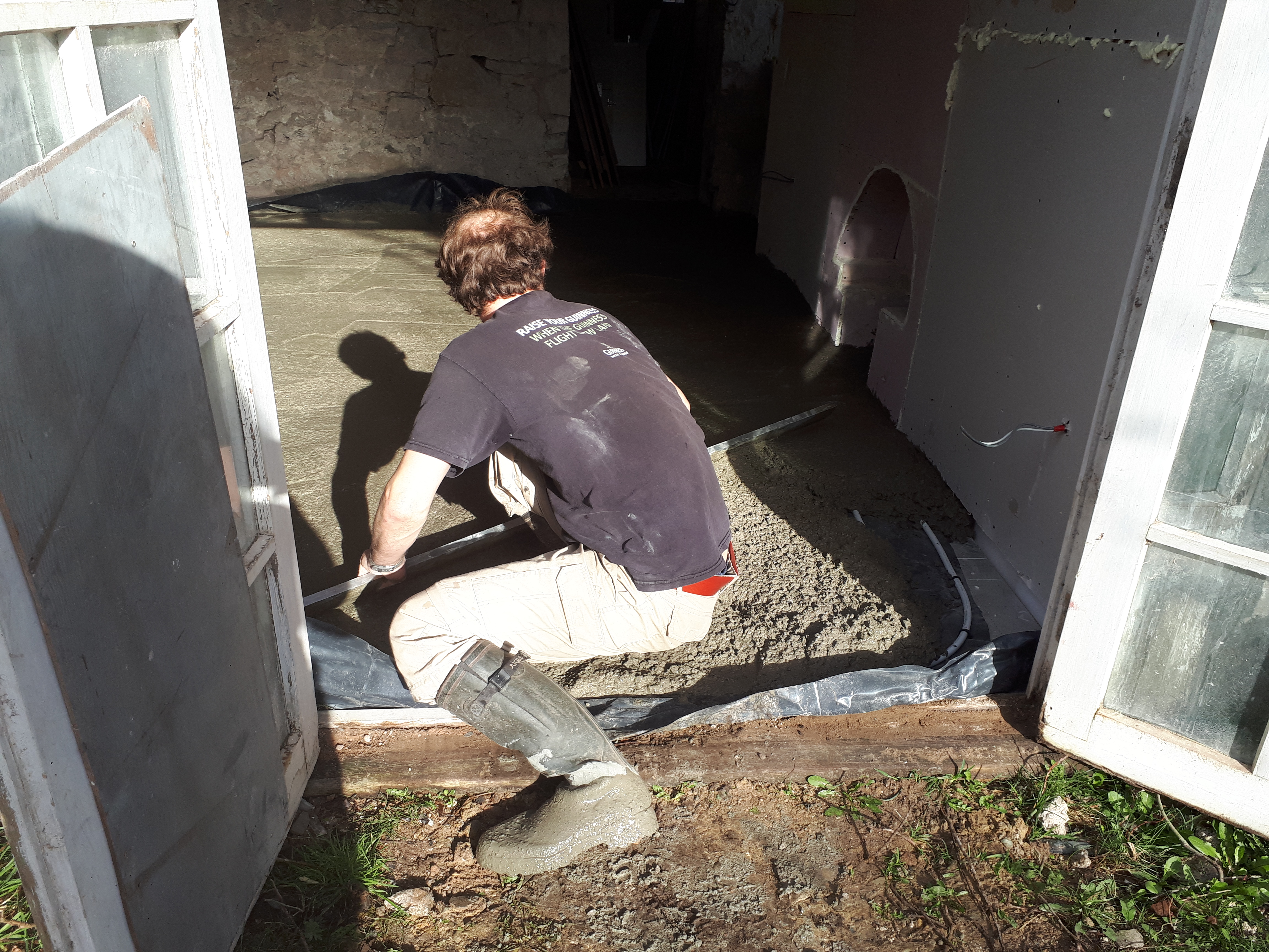 Arriving soon after us our cement deliverer was in a foul mood. He was clearly unhappy about the steps up to the house, the office not having passed on this information. He also told us our boards were unnecessary, and wasn’t pleased we were still fiddling around testing the heating.