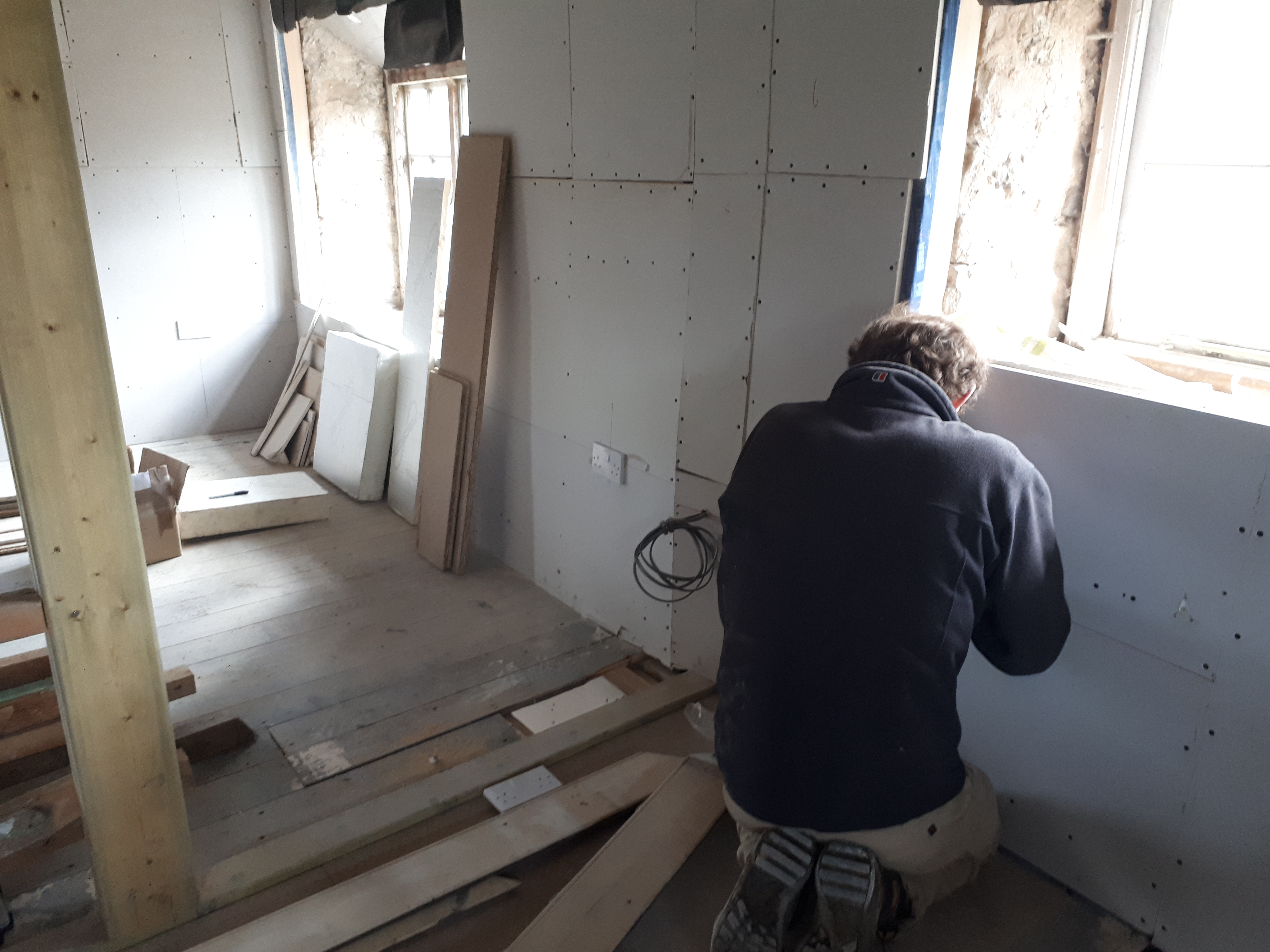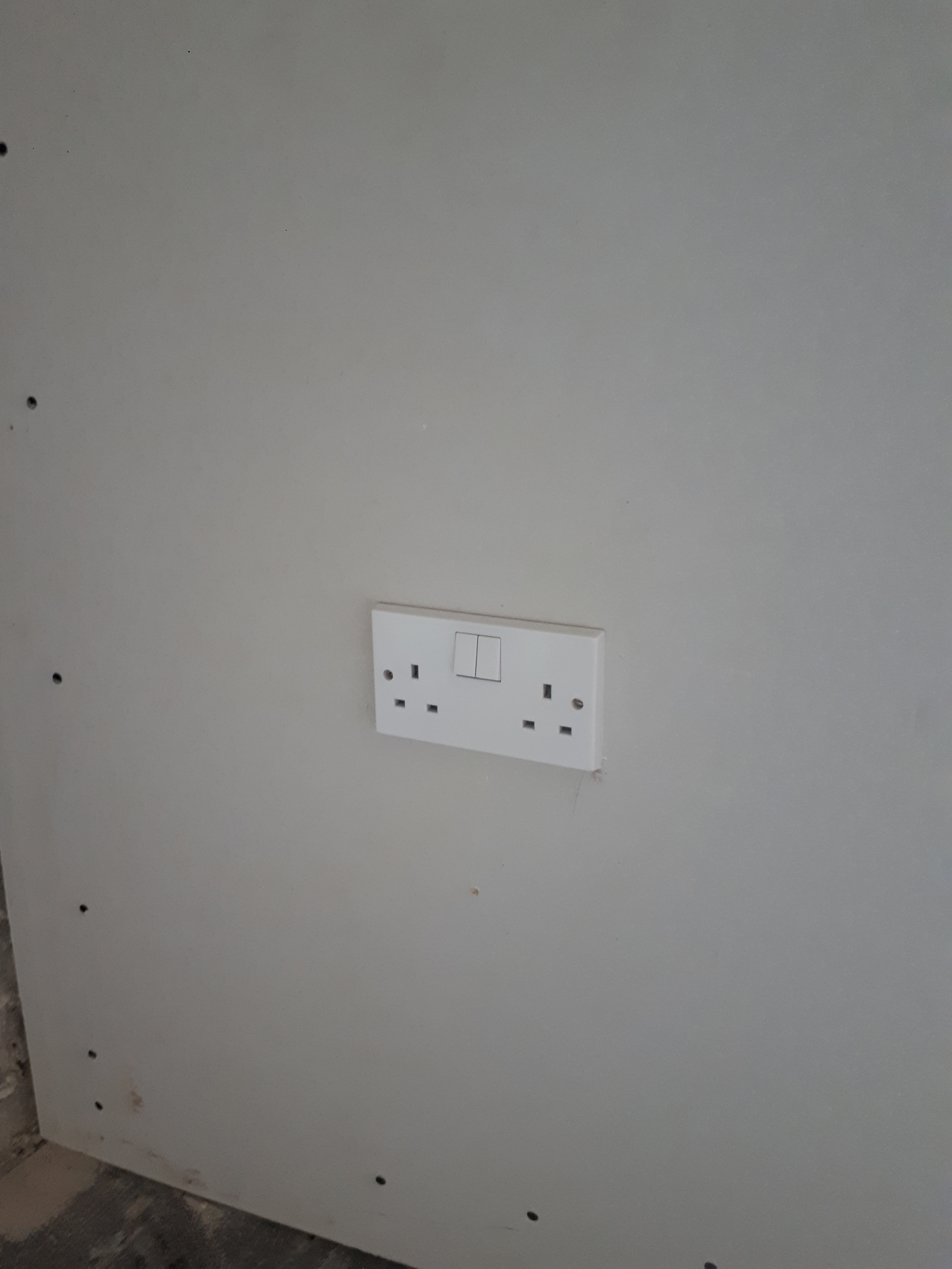 Cement spread, we had to wait for it to set a little before compacting it. Upstairs Chris continued installing sockets.