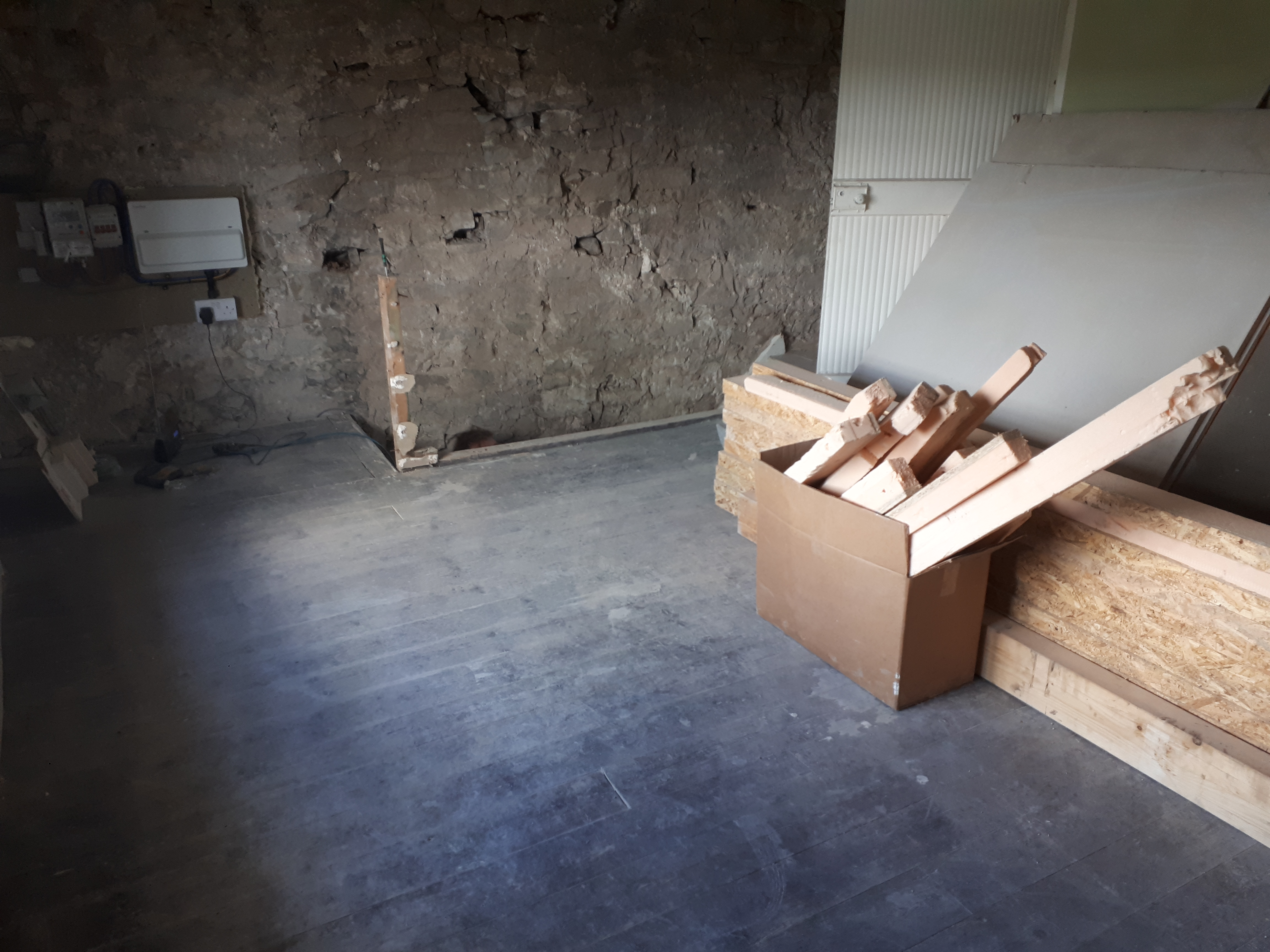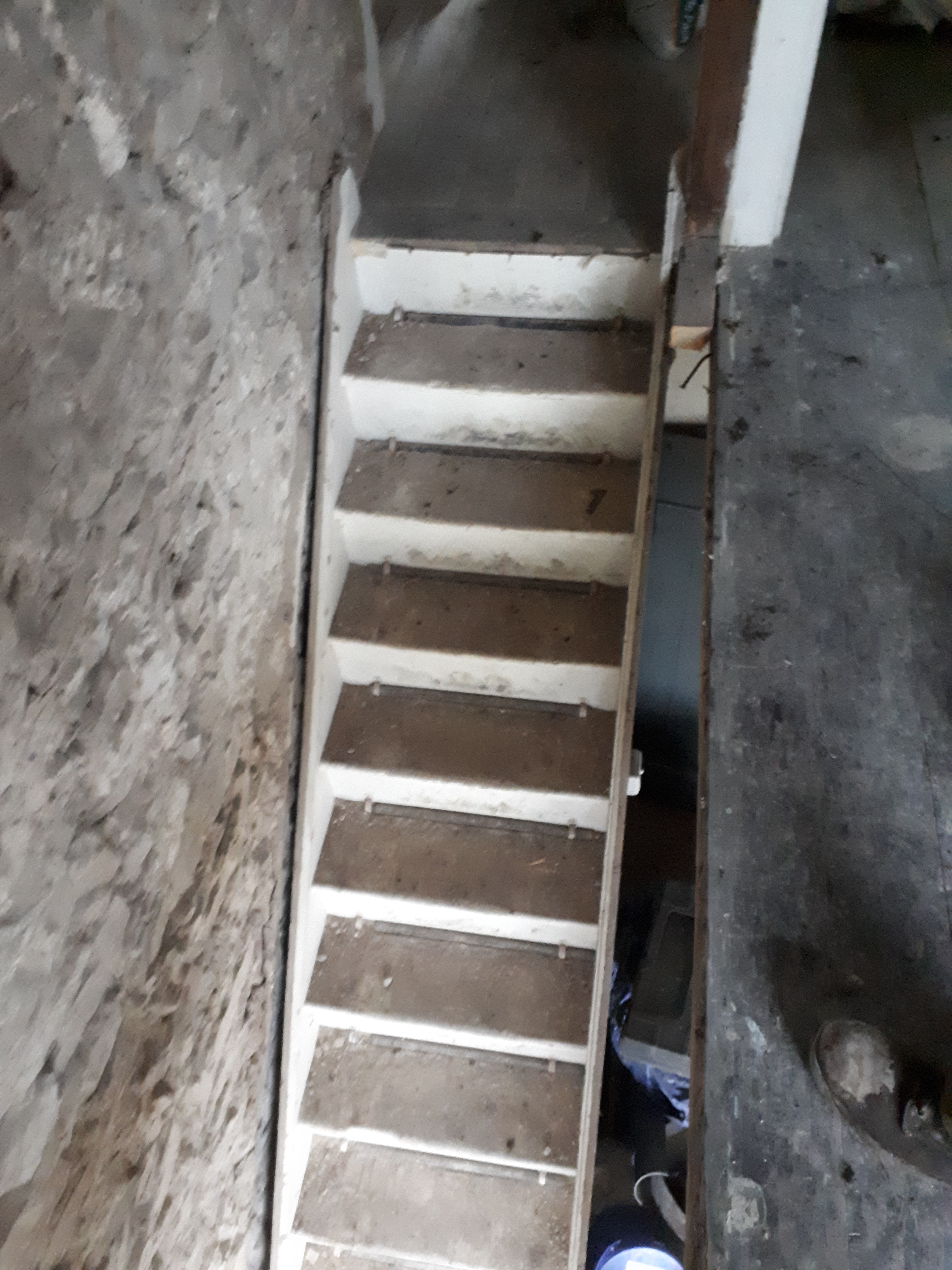 And lastly Chris removed a large piece of wood beside the stairs. With this gone we have space for significantly wider stairs without having to start cutting into the floor, something we only realised fairly late in the day.