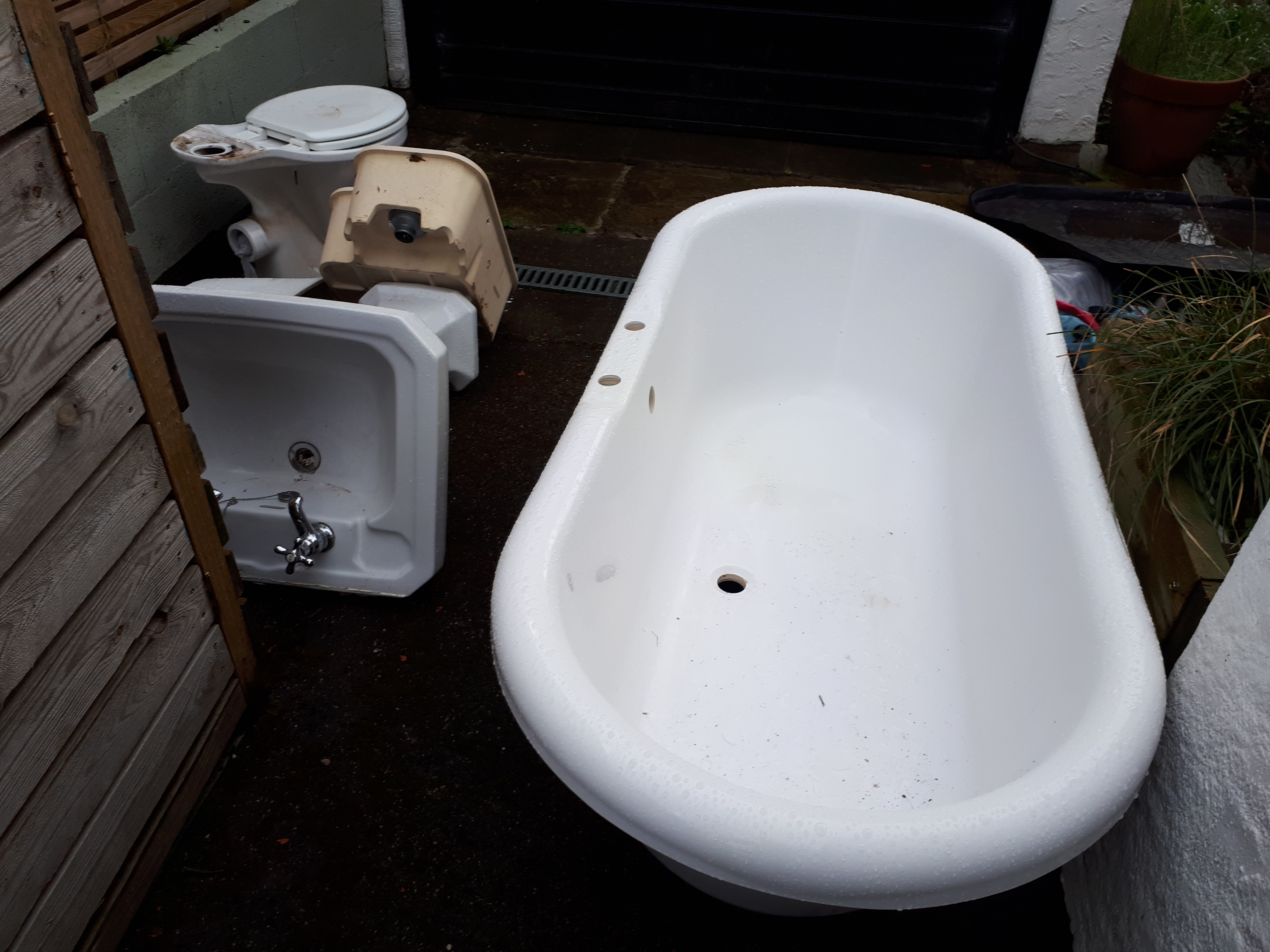 We’ve been busy shopping this week, and so far have a complete bathroom suite biding its time in the garden. The roll top bath was something I was keen on from the start, but we’ve struggled to find one cheaply second-hand. Eventually, one appeared at a suitable price. The toilet and sink came up even more cost-effective, being completely free. Our final purchase was actually round the corner from my parents, and my dad kindly collected it for us, with a friend’s parents getting rid of a nearly new dishwasher.
