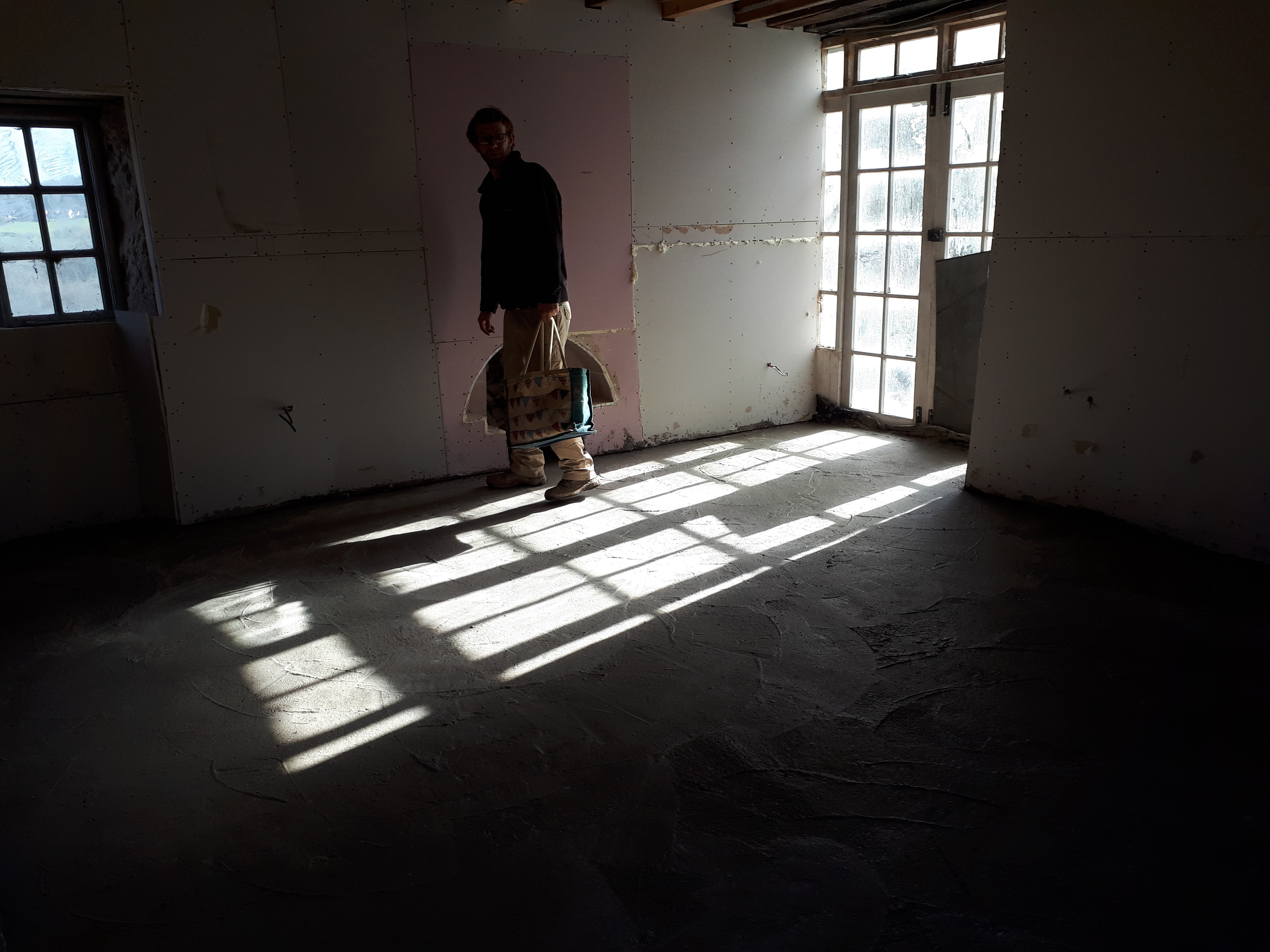 Back at the house we were pleased to see the floor had set. A little lumpy, but it should flatten out as we grind it down. Firstly though it needs to dry for another month.