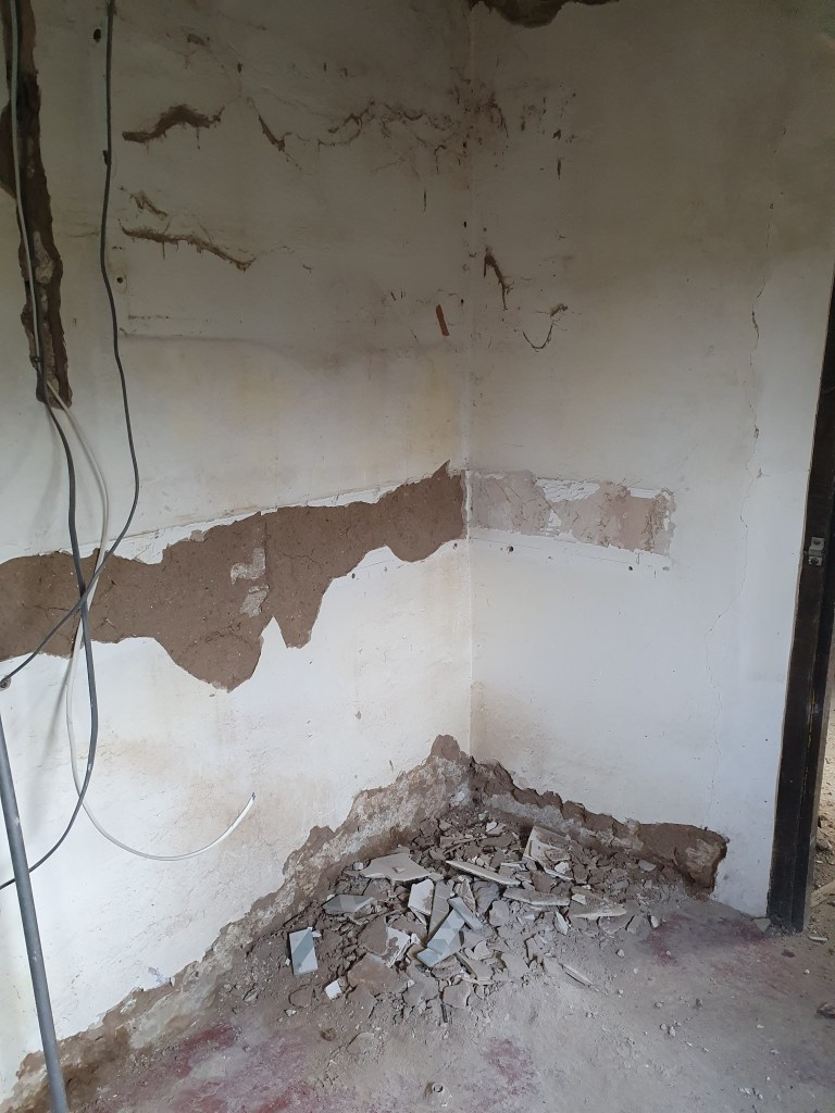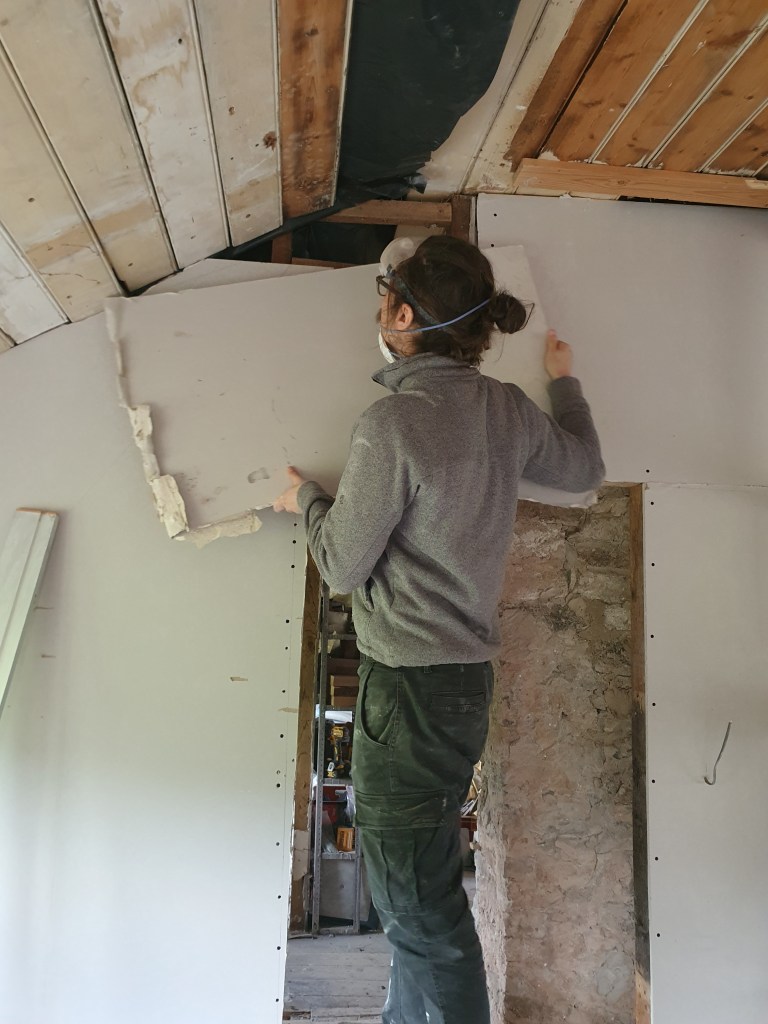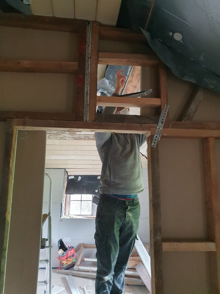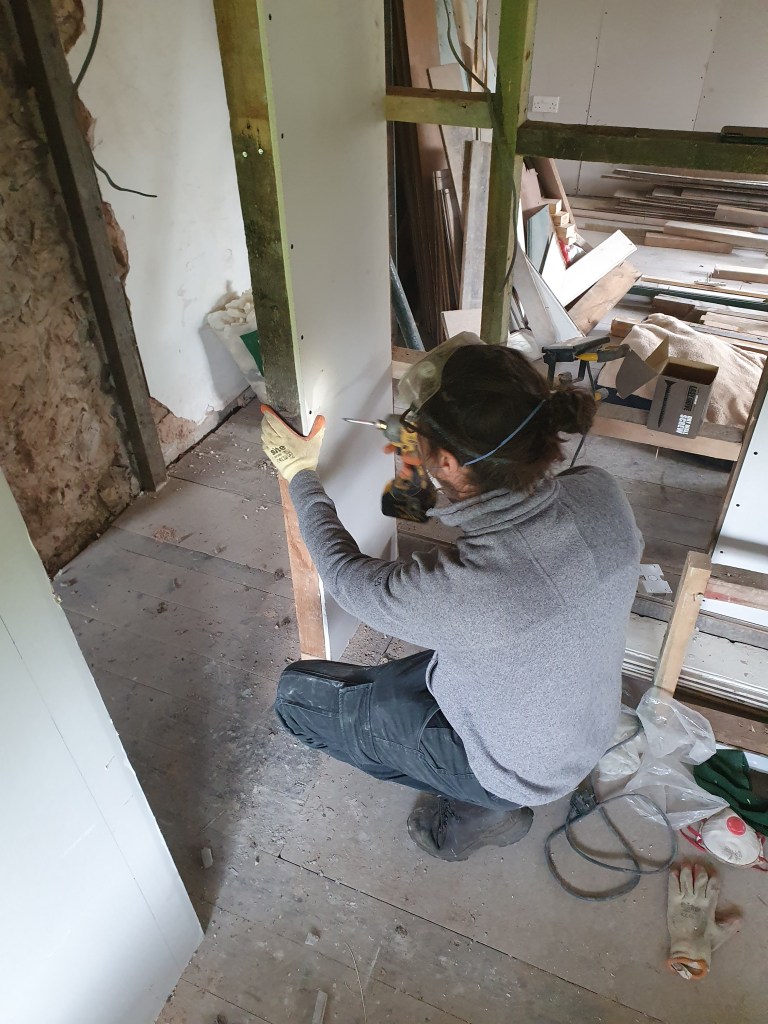 Our first job was to continue building the new stud walls around the bedroom. It was surprisingly hard to match the edge to the wall, which still curves nicely.