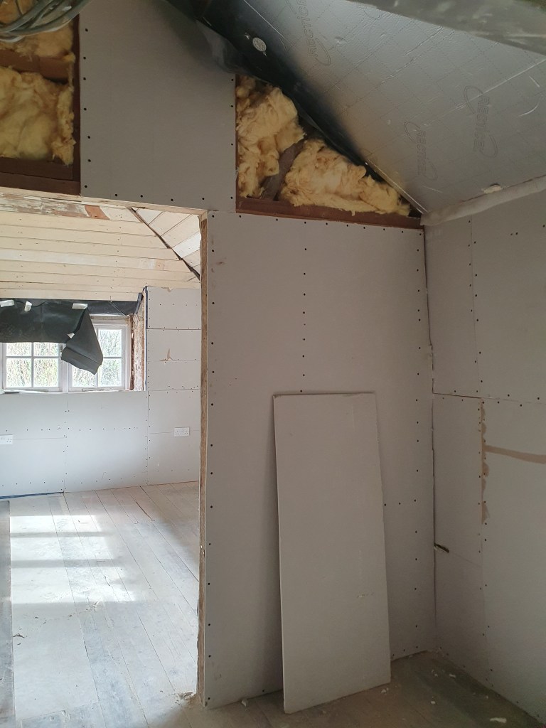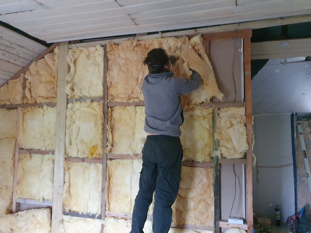 Having clad the interior of the walls we then had to fill them with insulation. This is for soundproofing, rather than its heat trapping properties.