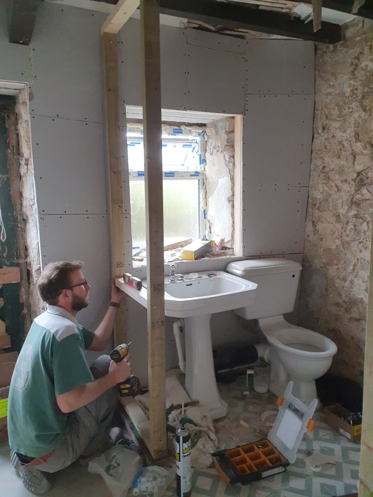 In order to add a separate tap for filling buckets, Chris started to build the stud wall for the downstairs toilet.