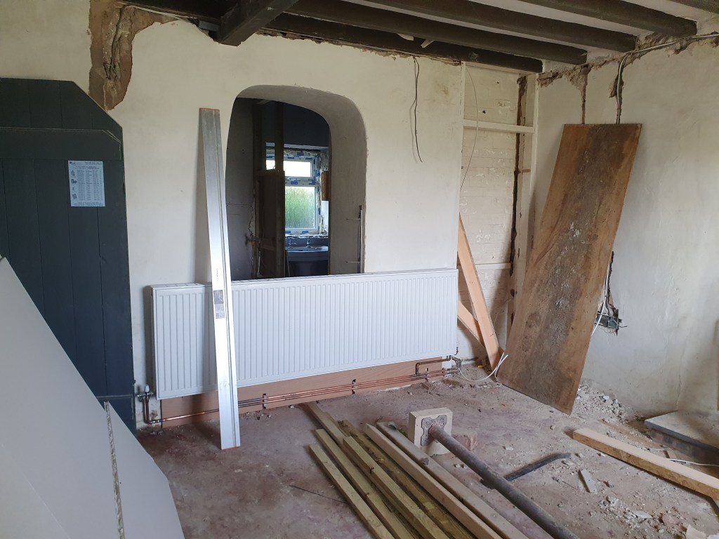 This week the final bits of the central heating were finished, and the large radiator in the lounge moved across so there’s space for my future piano.