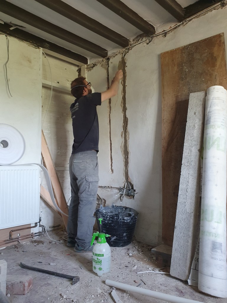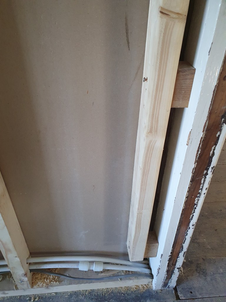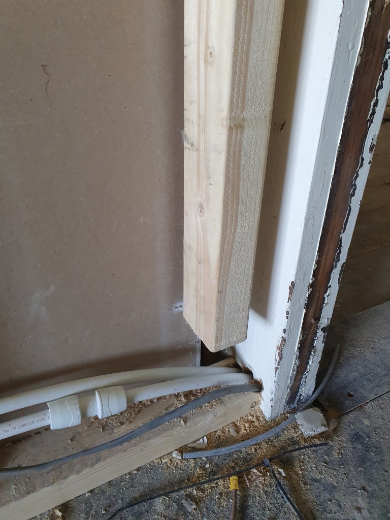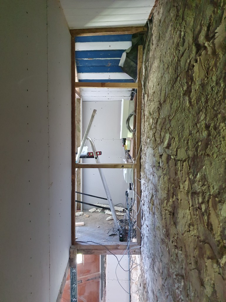 Downstairs Chris was sorting out the electrics in the lounge, that had previous been hidden by the insulation board and doors.