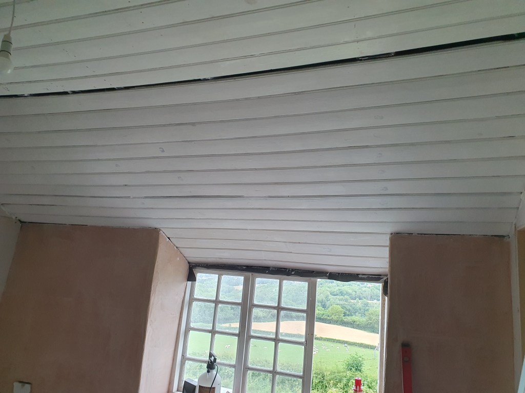Prior to packing our bags we tried to move forward with getting our bedroom done. Sleeping surrounded by dust and dirt is no fun, and we felt we needed one room as a sanctuary. I pushed on with filling all the gaps in the ceiling with cork, and repainting.