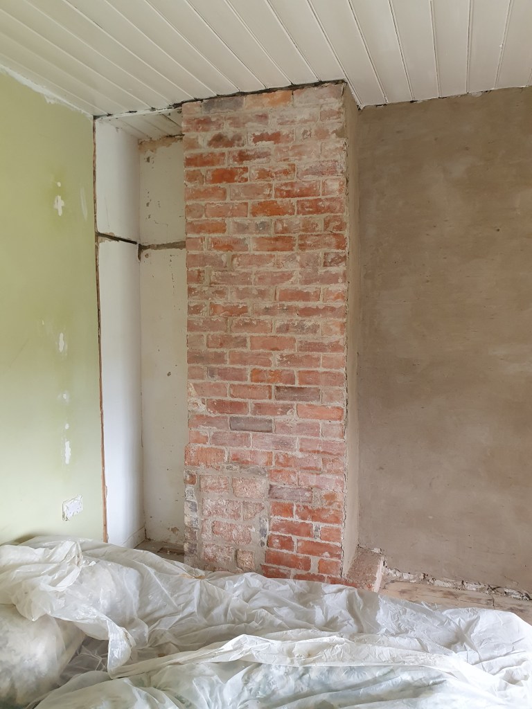 On our return I set to work repointing the chimney brest in the bedroom. Chris hadn’t been keen at first with the idea of leaving it exposed, but I wanted to reveal a little of the history of the house. Repointed, he now sees more of it’s good side.
