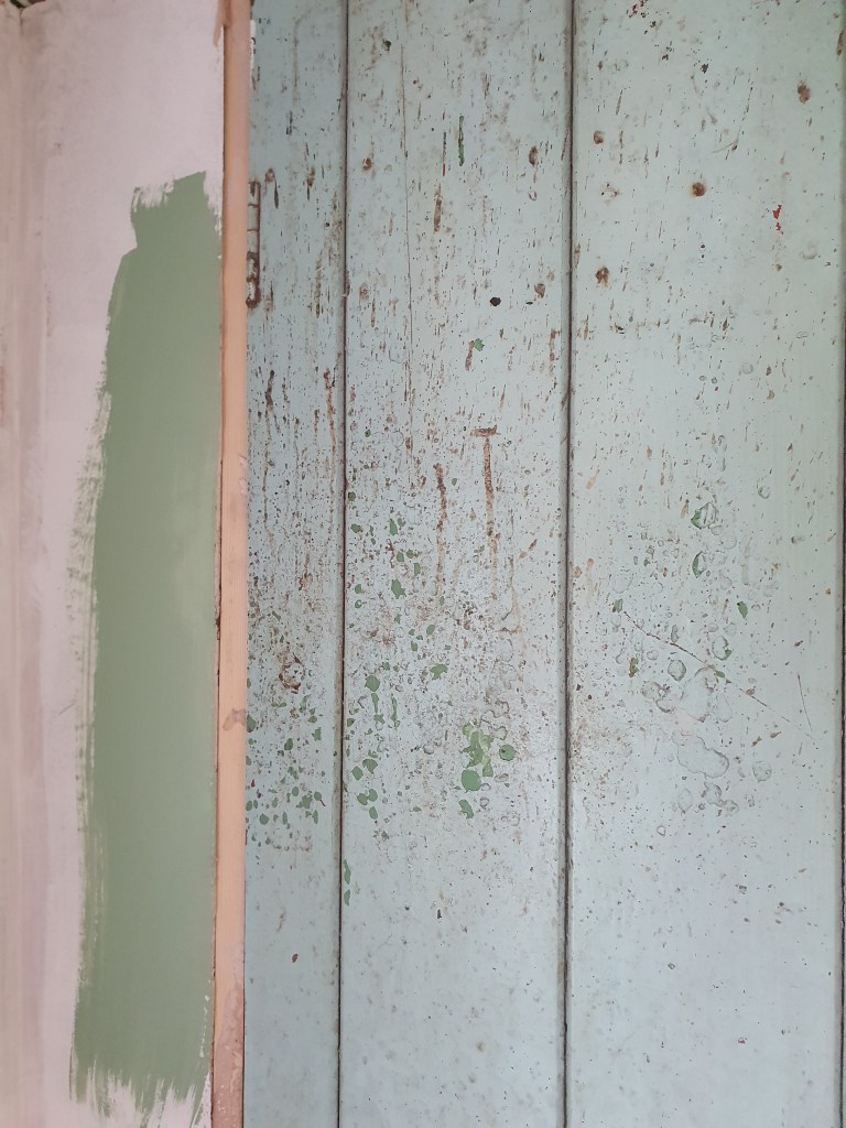 Finally we were able to look at wall colours. We went with eco paints for most of our old house, and really liked them. The brand we went for was quite expensive, but Chris found someone selling end-of-line tins at half-price online, so we selected a green for our bedroom and a yellow for the bathroom. It was important the green went with the old reclaimed doors we’re using for the cupboard, which I think it does. The yellow needs two coats of white under it first, so we’re yet to see how that one turns out. With the yellow awaiting it’s first coat we’re ordered some tile samples to match against it. It seems a little bizarre to be getting onto finishing touches when the rest of the house is still dust and disasters, but it’s easing our stress to have a little sanctuary in the corner of the house, away from all the mess.