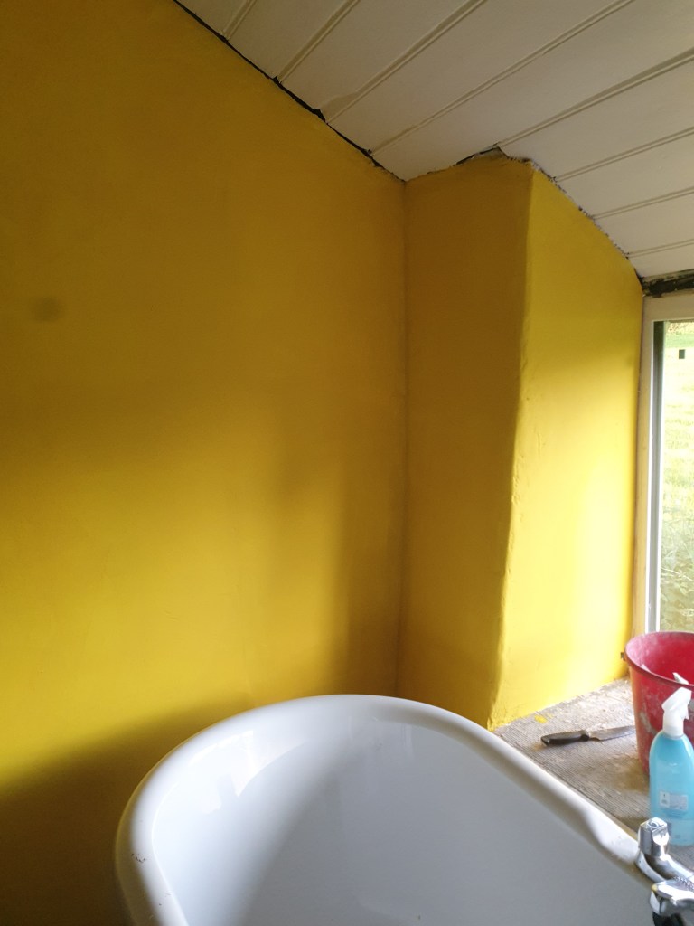 Similarly the yellow for the bathroom wasn’t the original yellow I wanted. This one is called buttercup yellow and needed two white coats before I could start on the yellow paint. It’s brighter than I originally planned, but I think it will mellow once the room has more in it to break up the intensity of the colour.