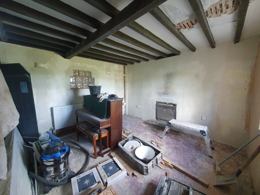 Next I sanded down, filled and painted the new plaster in the lounge with watered down paint.