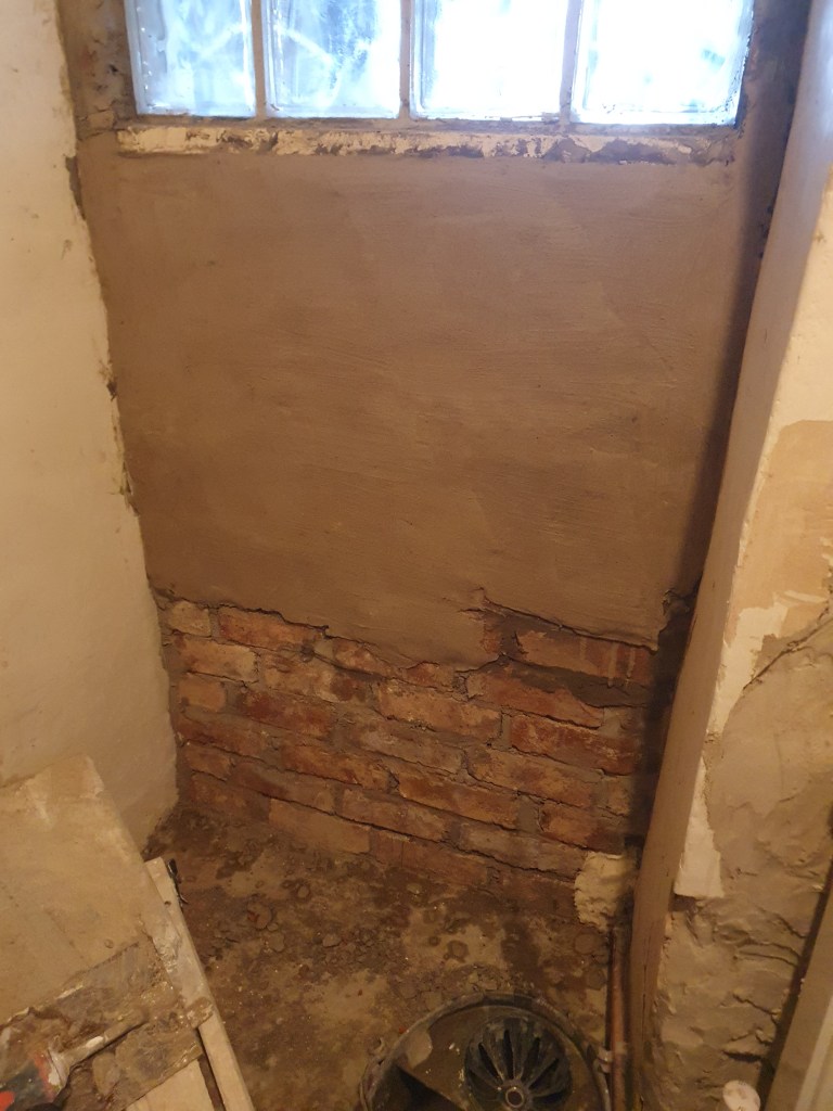 Having completed the lounge I headed round to the utility room to plaster over the exposed stone and brick.