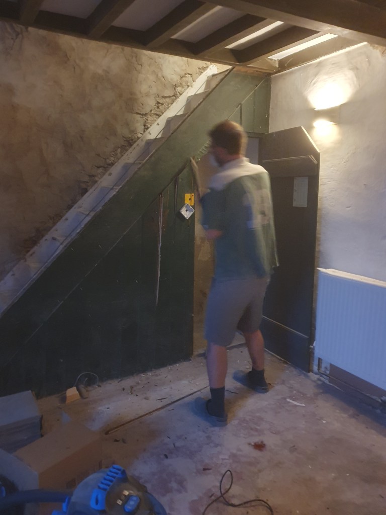 Next we needed to empty the room, ready for leveling the floor. This included taking apart the understairs cupboard. It feels like this is the one last reminent of what the house was, cleared away to make space for the new.