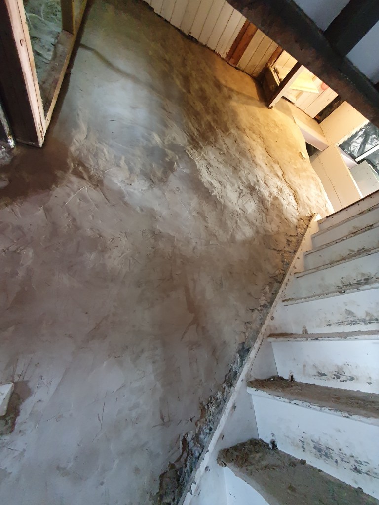 Finally the floor was washed and levelled, a job Chris got on with while I was out at my volunteer day.
