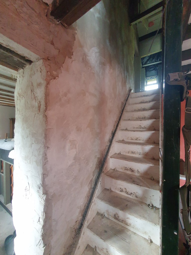 I continued with my plastering on the stone wall, now able to reach the areas that had been hidden behind the machines.