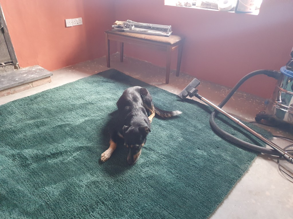 Lounge now painted I rolled out a rug donated by my mum and dad, to add a little coziness until we finally carpet. Due to the general dirt and grime of DIY this will be the very last job in the house. Idris is certainly a fan, enjoying having something comfy to lay on.