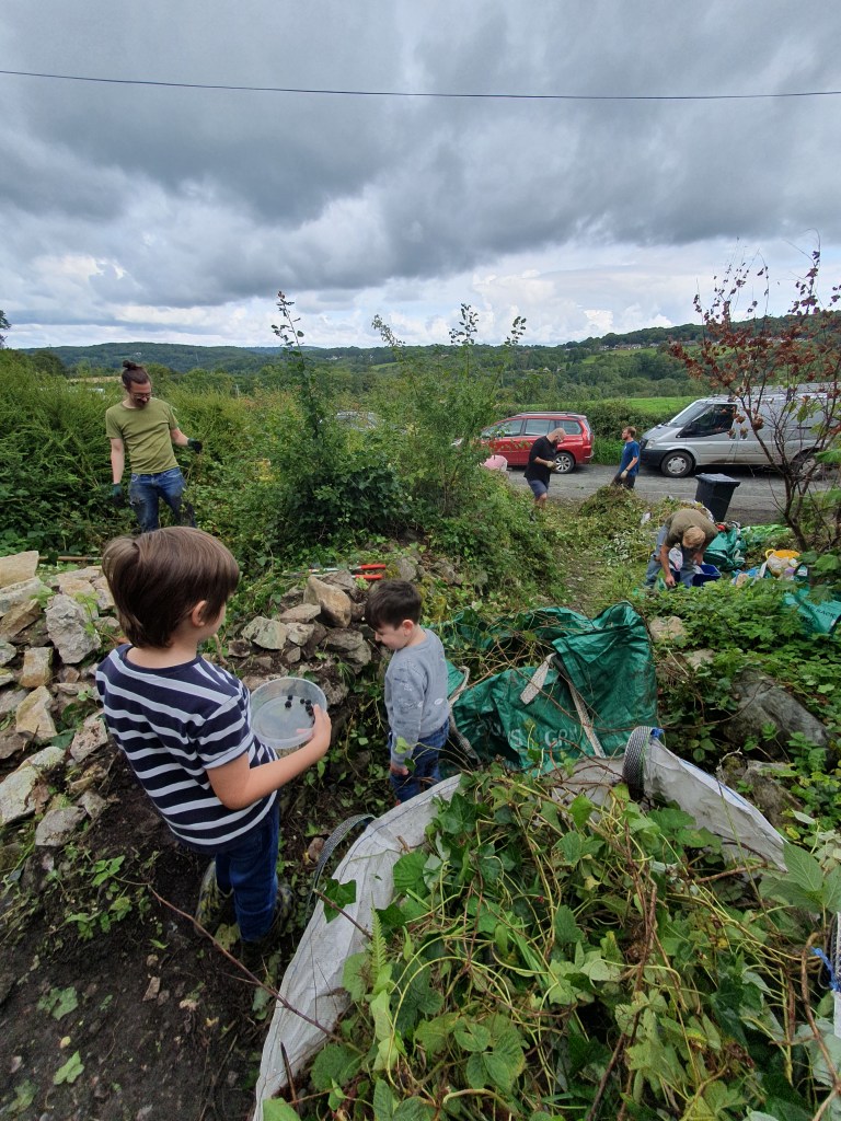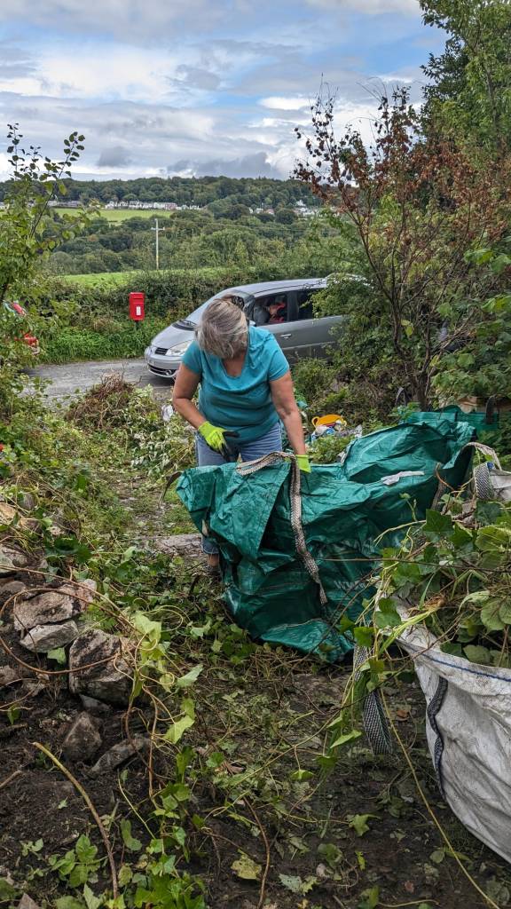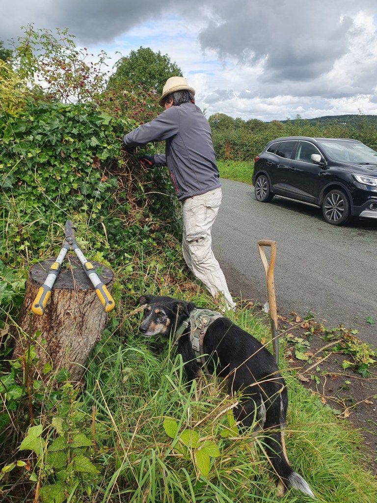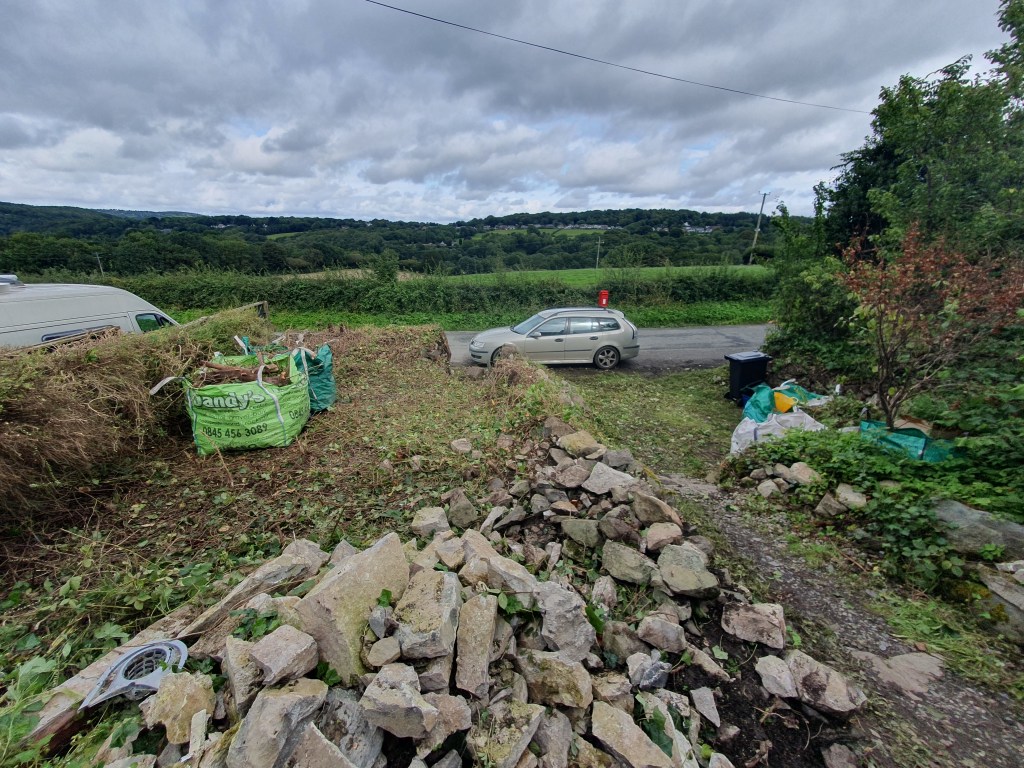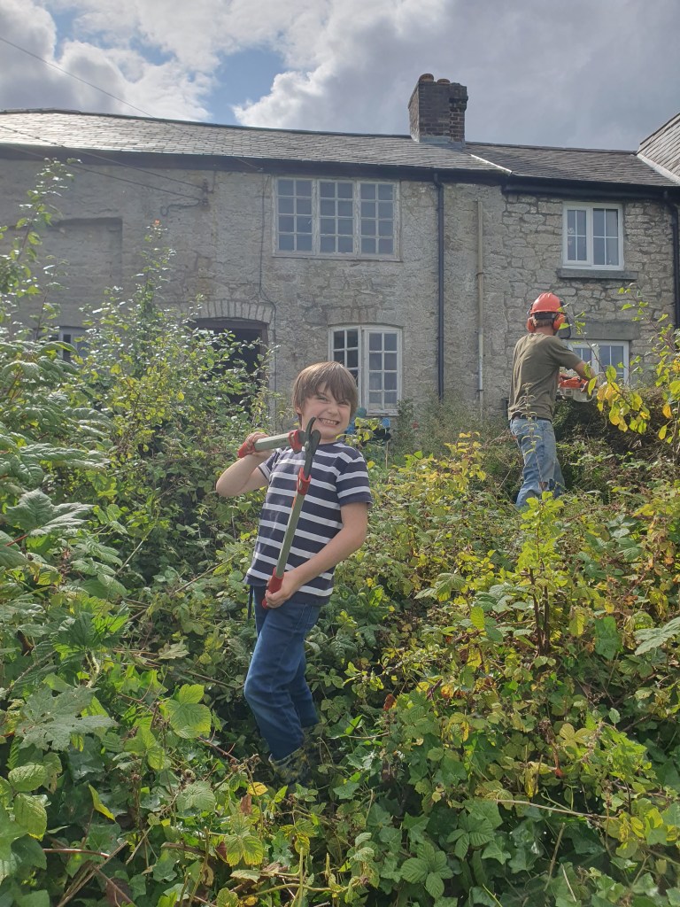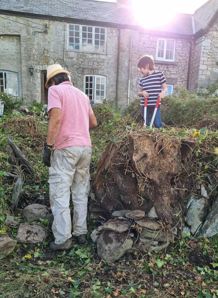 And then the family descended! The aim of the day had been to clear out the larger section of the front garden, which consisted of trailing ivy, bramble, an overgrown box hedge, and various bits of scrub. Oppomistically I’d thought the ivy was just a relatively thin carpet, which could easily be pulled up, but I was wrong. It turn out the ivy was nearly a foot deep in places, with thick tangled stems that wove their way through the old stone walls. Trying to pull it up was impossible, and reaching the soil beneath seemed a mammoth undertaking. I’d clearly made the right decision bringing so many people together to tackle it! We filled 12 bulk bags in the end, and the ground is still a mess of ivy roots.