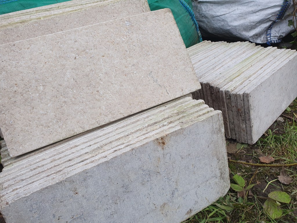 Finally, the utility is ready to plaster, just in time as we’ve had our delivery of limestone for the floor, an end of line offer from a reclaimation yard. On delivery they agreed to take our unwanted ridge tiles, which had failed to sell online.
