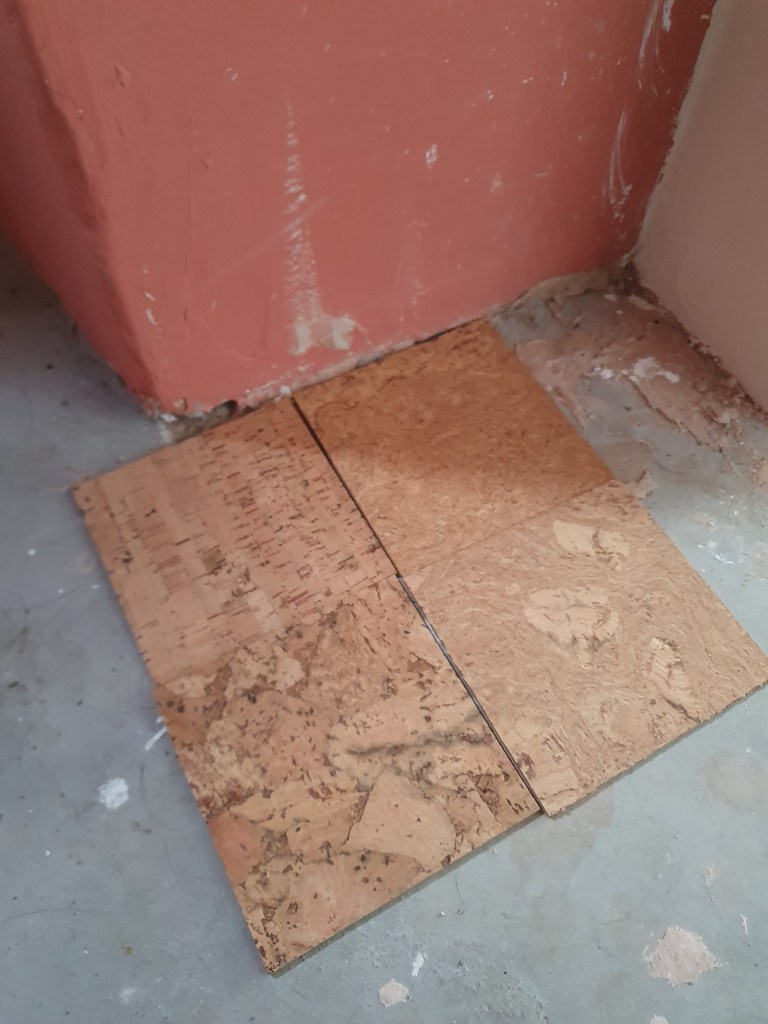 We’ve been battling over the flooring in the lounge for a long time, as Chris wanted hard flooring and I wanted carpet, but we may have found a compromise in a cork flooring, which isn’t as cold as tile or wood, and has good sound absorption qualities.
